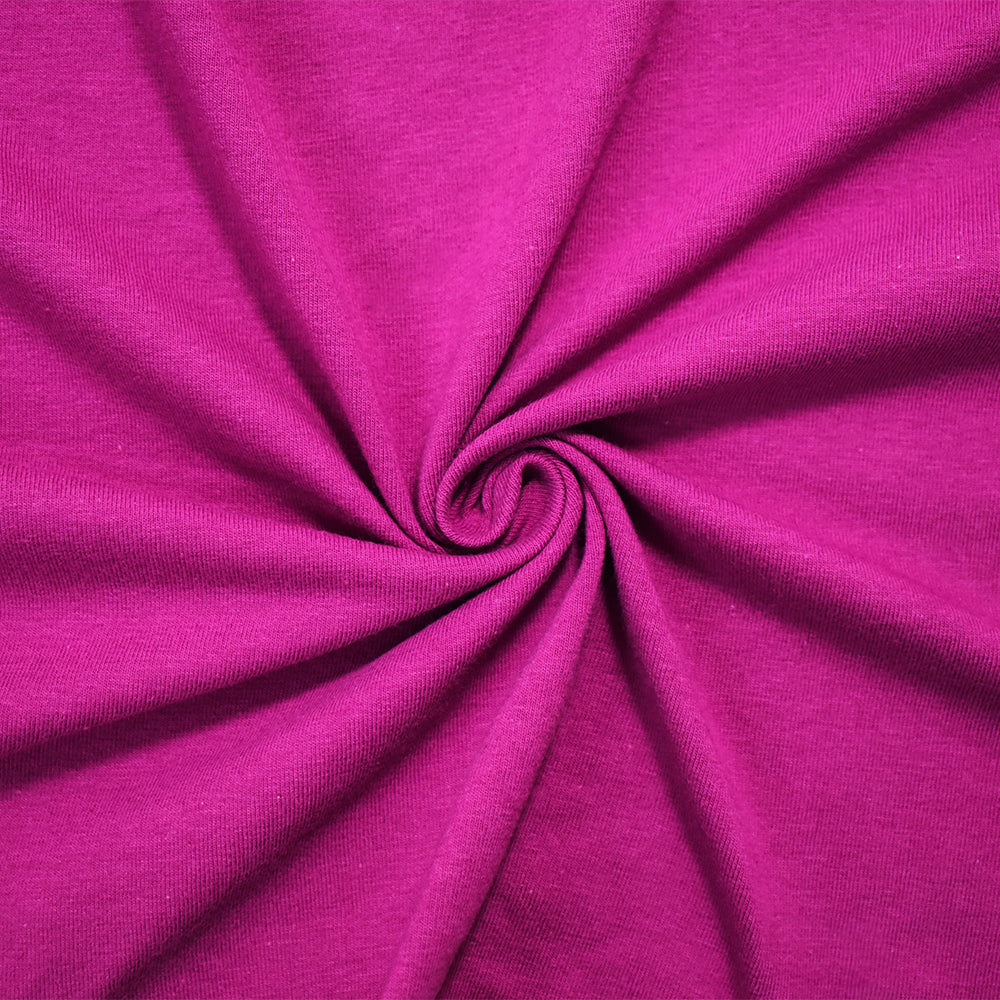 -Top quality medium weight cotton spandex knit in an on trend season perfect darker hue magenta purple-pink color. True medium weight 10 oz with a soft hand, great 4 way stretch, and nice recovery. A versatile fabric great for many different uses!