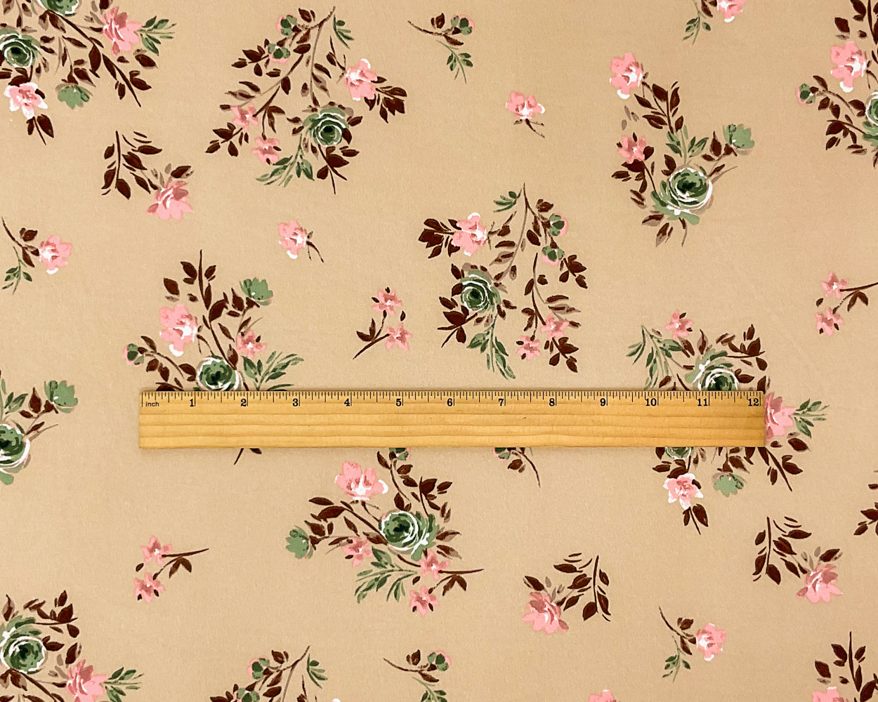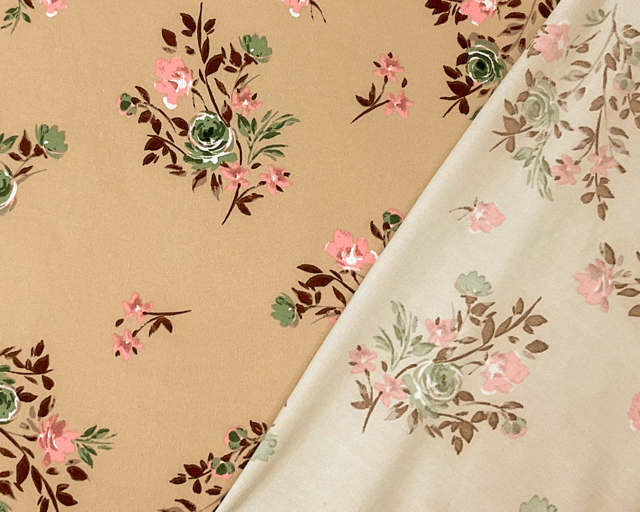 Beige-Multi Poly Spandex Stretch Floral Print Brushed Jersey Knit Fabric