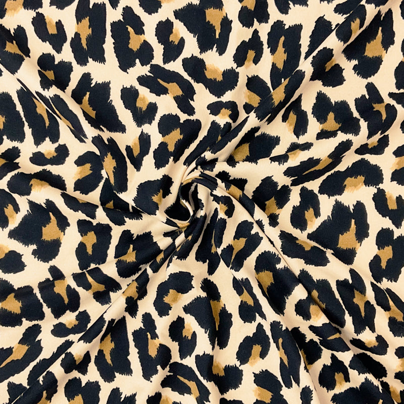 -Poly Spandex Stretch Leopard Print Double Brush Jersey Knit Fabric