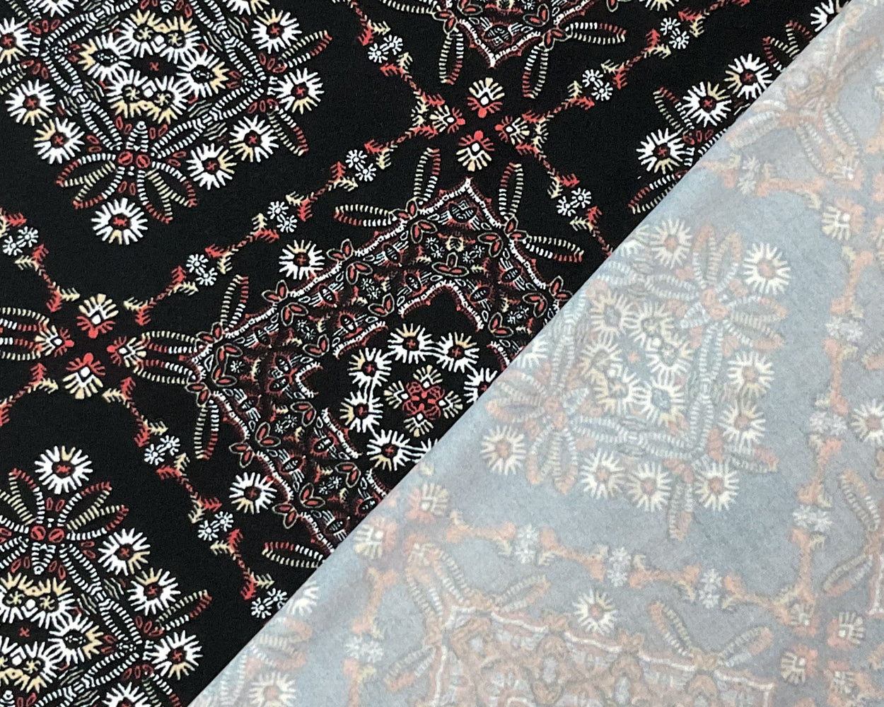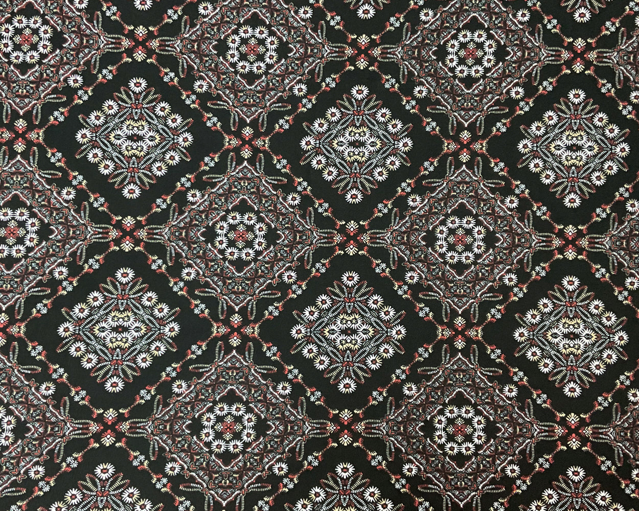 -Black-Multi Poly Spandex Stretch Floral Diamond Print Double Brush Jersey Knit Fabric