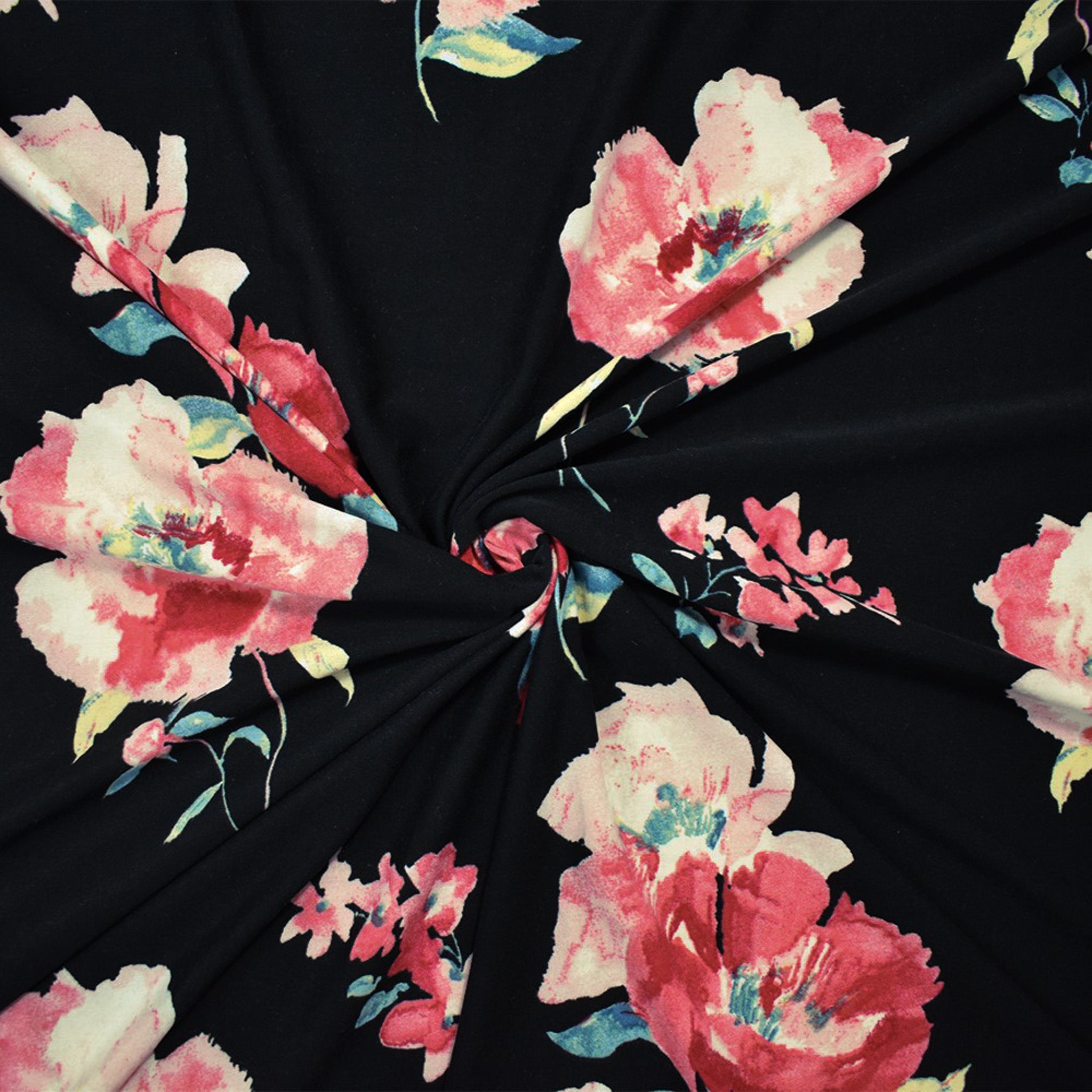 Black-Multi Poly Stretch Floral Printed Brushed Jersey Knit Fabric