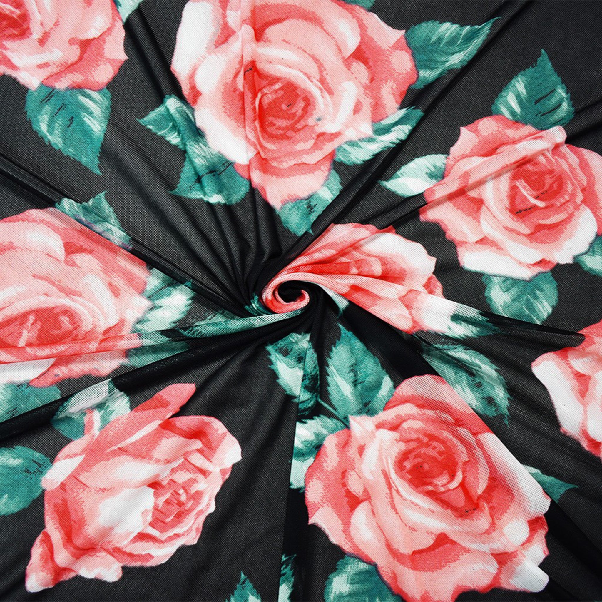 Black-Multi Poly Stretch Spandex Floral Printed Mesh Knit Fabric