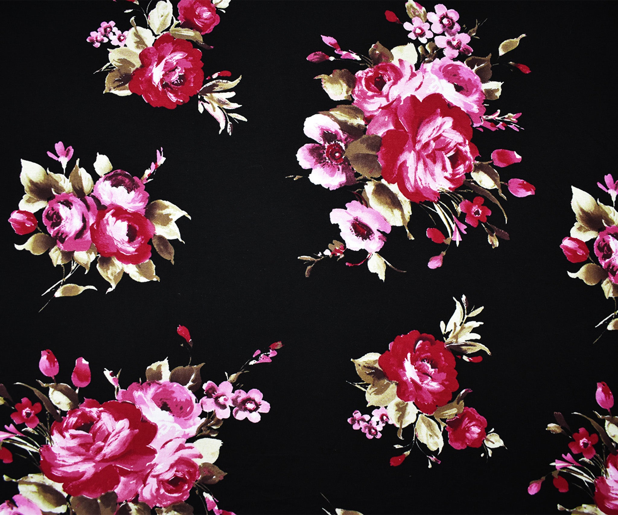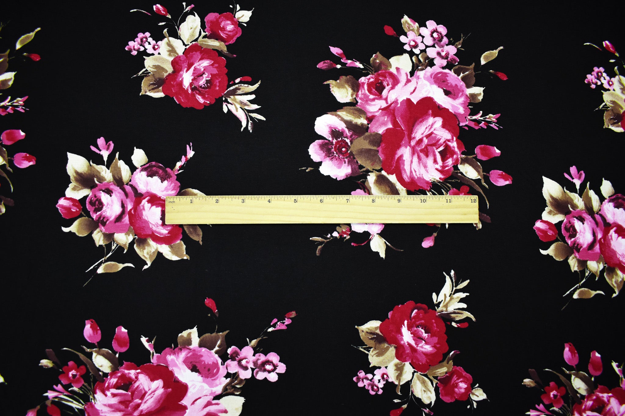 Black-Multi Rayon Stretch Spandex Floral Printed Jersey Knit Fabric