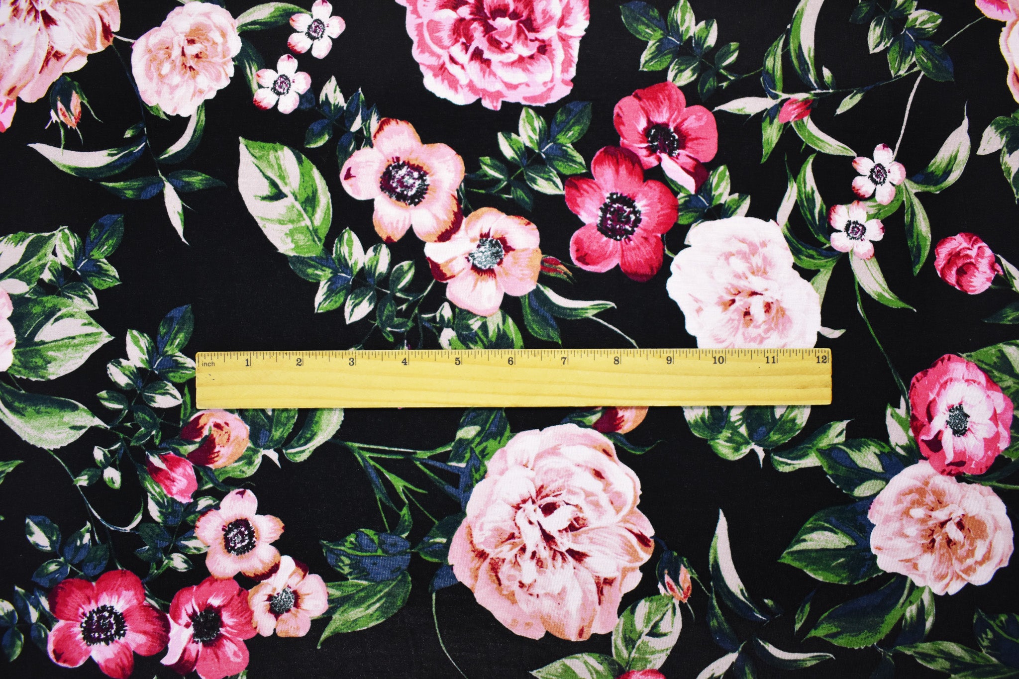 Black-Pink-Multi Rayon Stretch Spandex Floral Jersey Knit Fabric