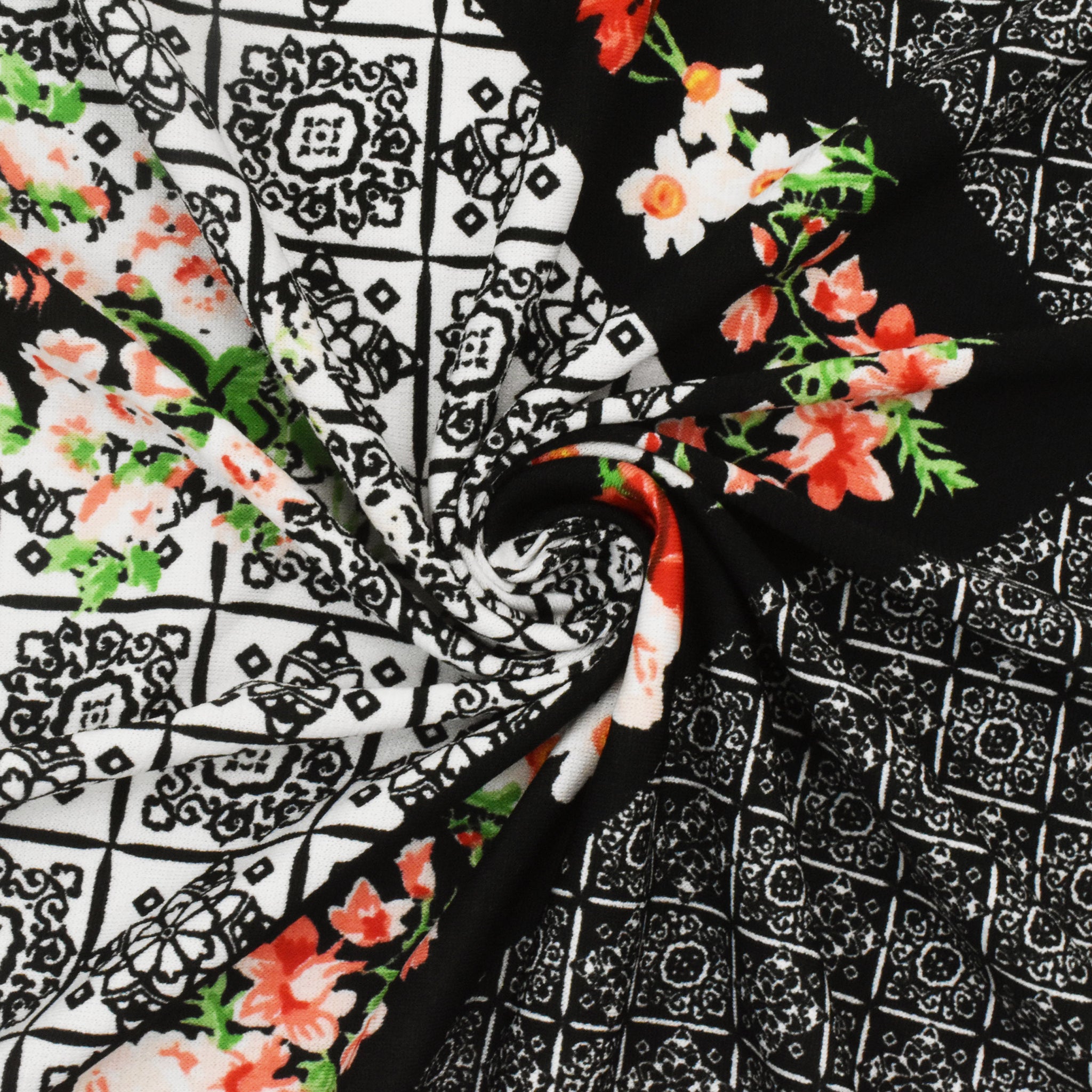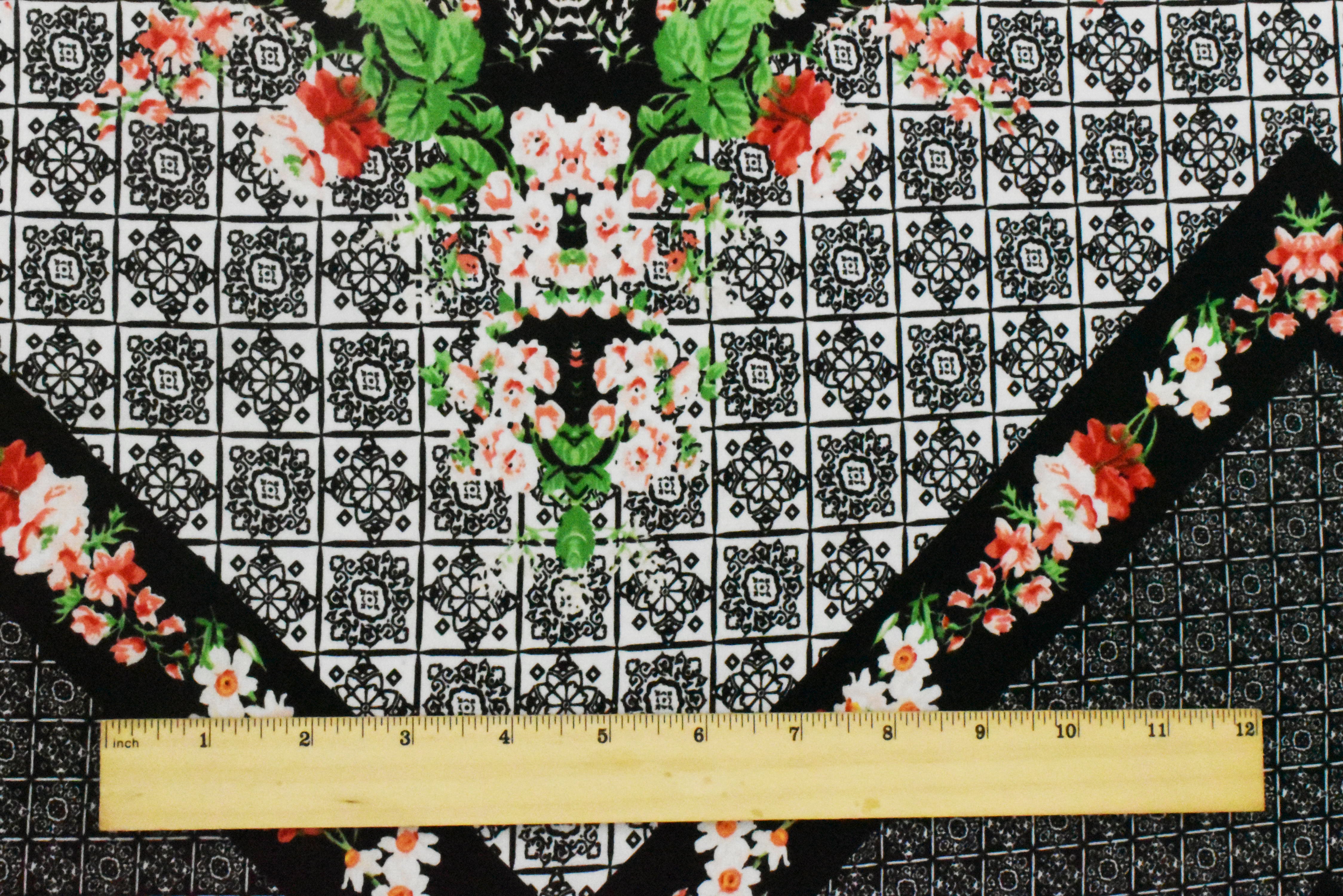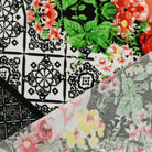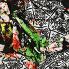 Black-Red-Multi Border Floral Printed Stretch ITY Jersey Knit Fabric