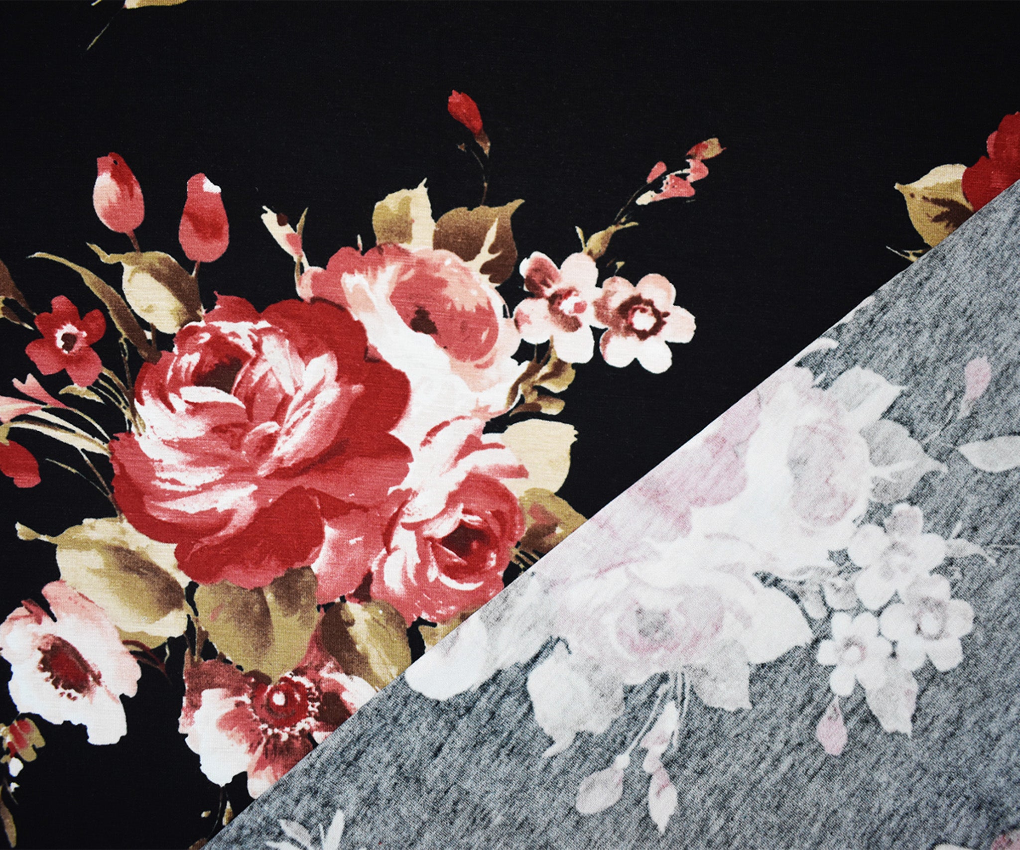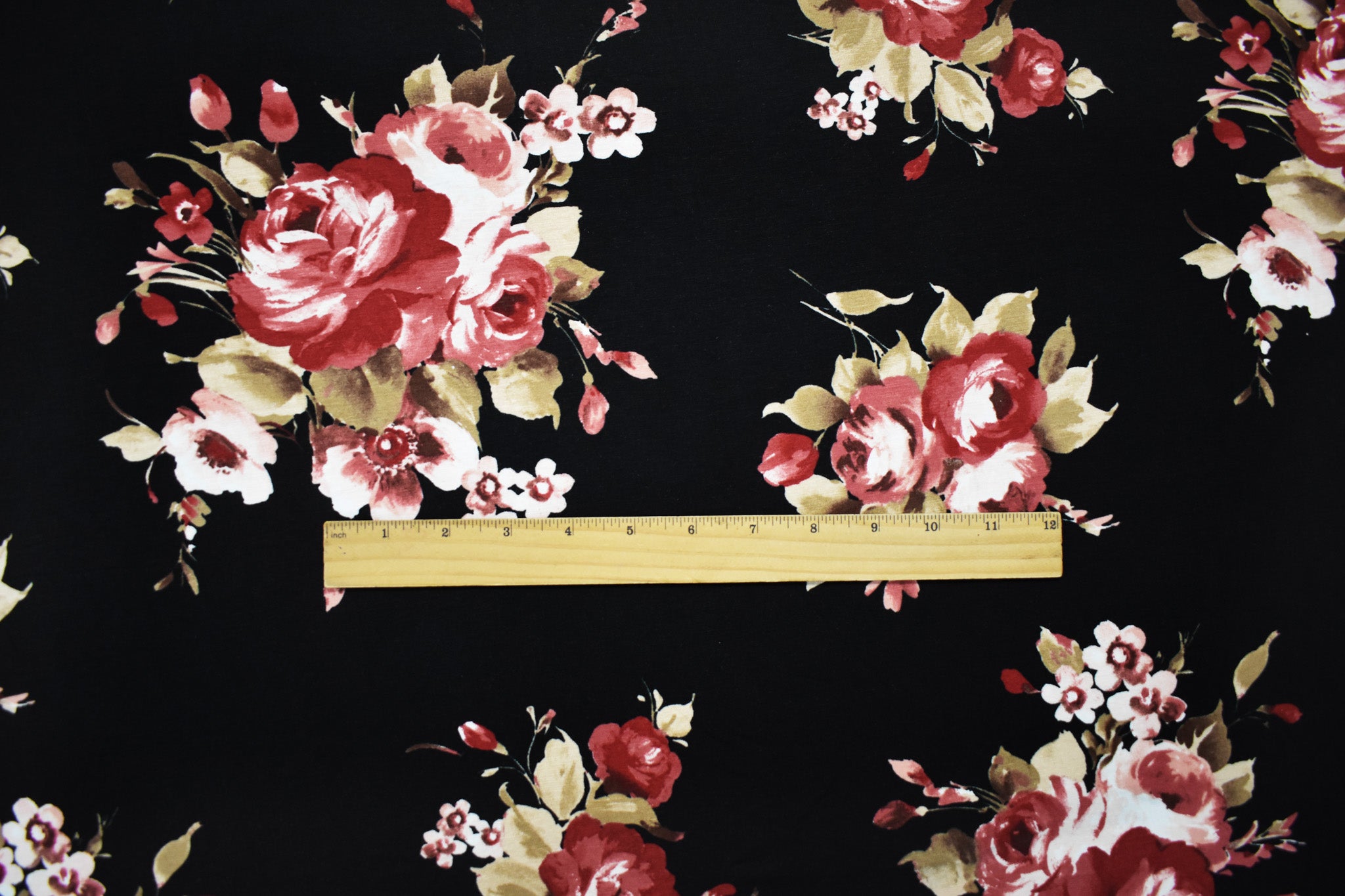 Black-Red-Multi Rayon Stretch Spandex Floral Jersey Knit Fabric