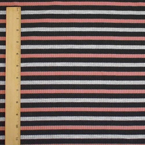 Black/Soft Peach/Gray Striped 4X2 Rib Knit Fabric