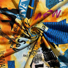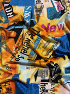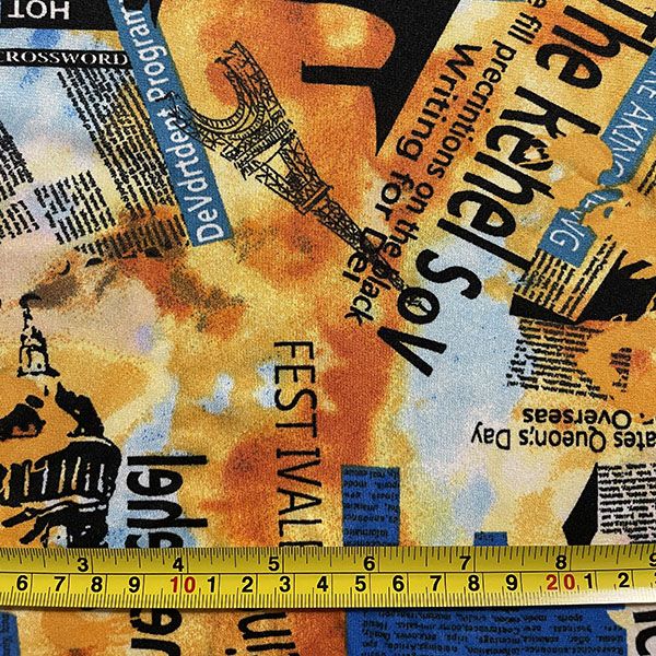 -Multi Color Newspaper Print Stretch Double Brushed Knit Fabric