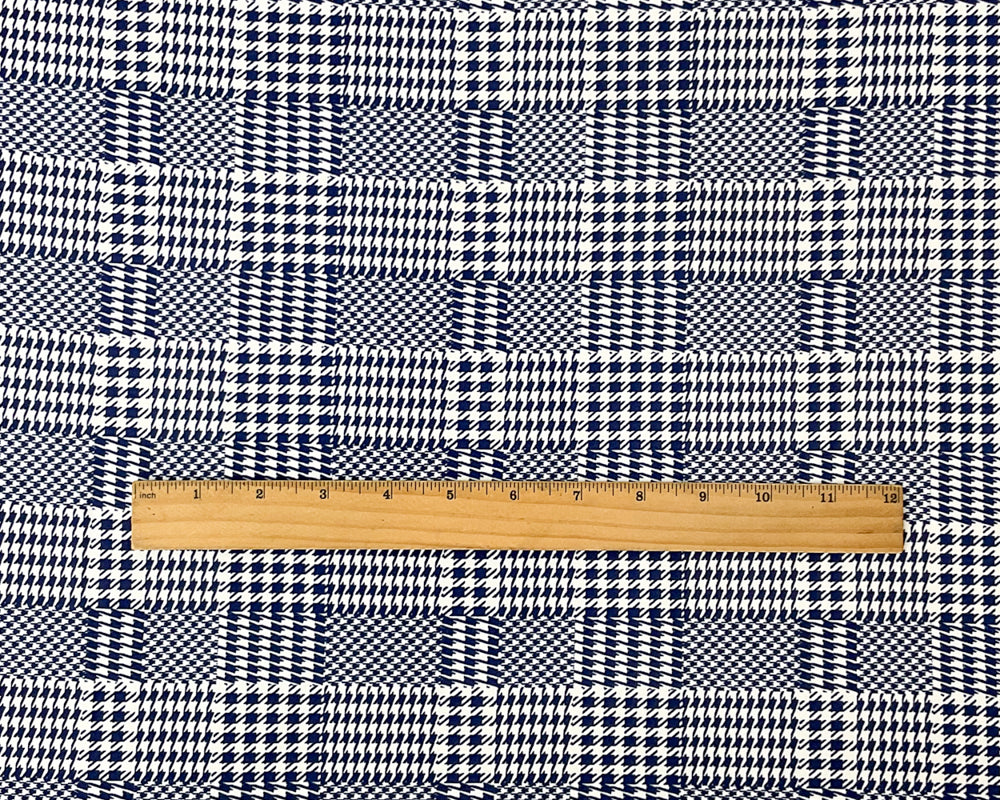 Blue Poly Stretch Houndstooth Check Print DB Jersey Knit Fabric