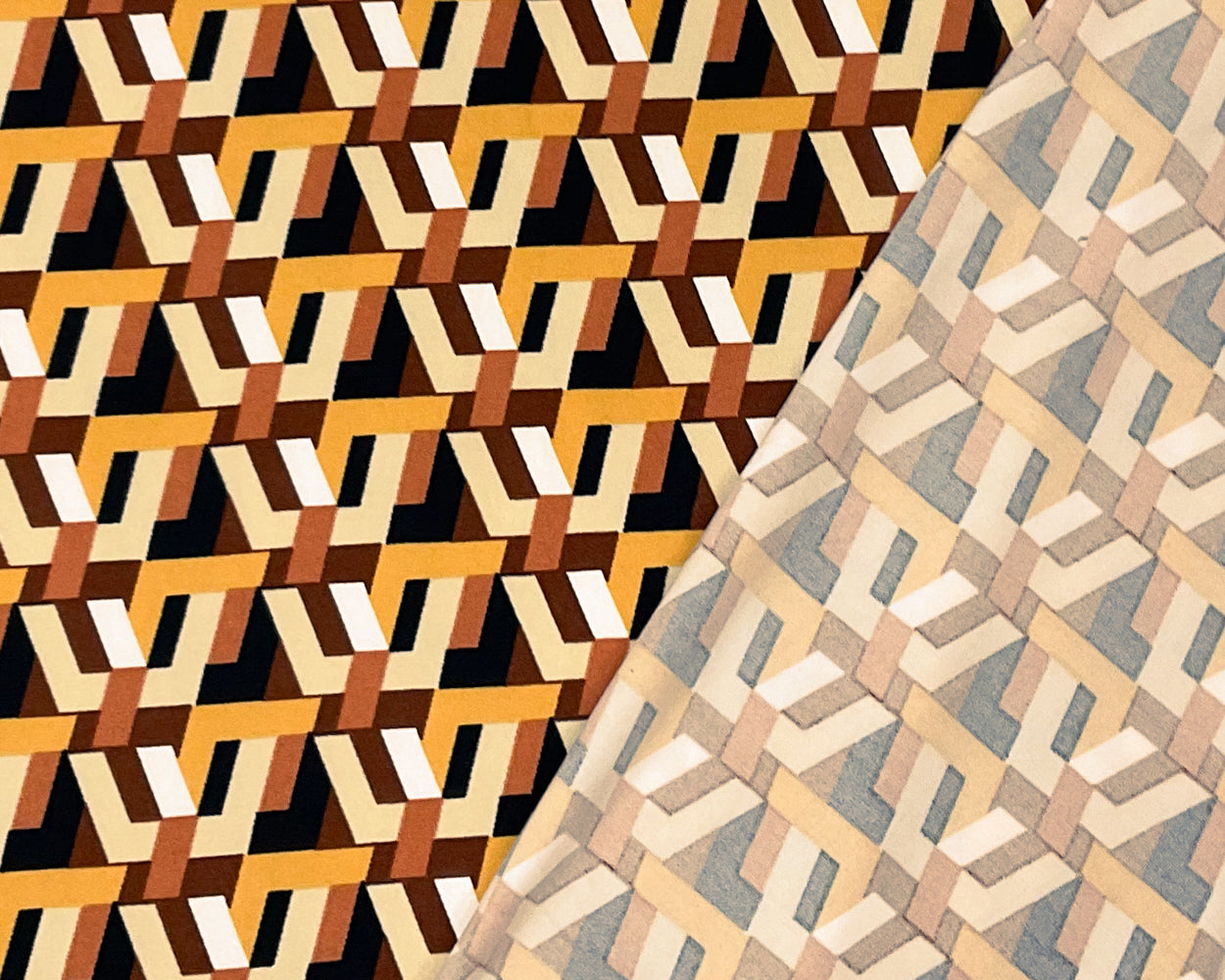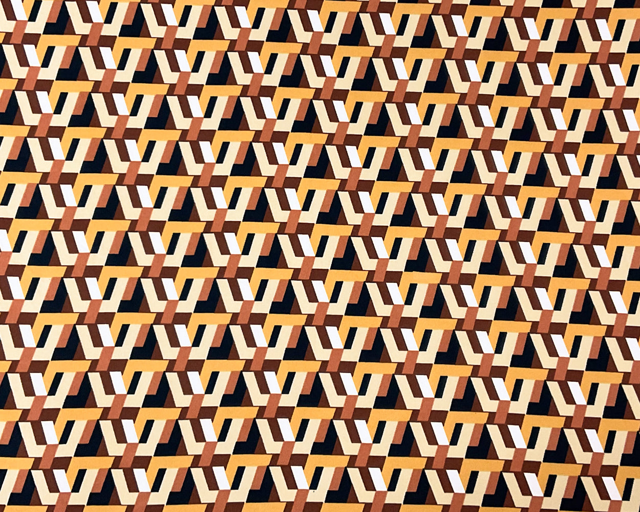 -Brown-Multi Poly Spandex Stretch 3D Geometric Print Single Sided Brush Jersey Knit Fabric
