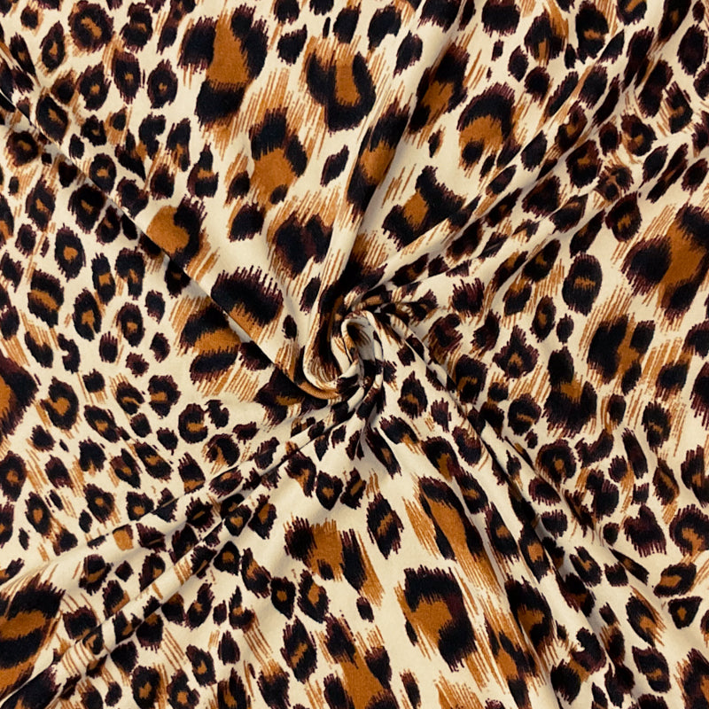 -Poly Spandex Stretch Leopard Print Double Brush Jersey Knit Fabric