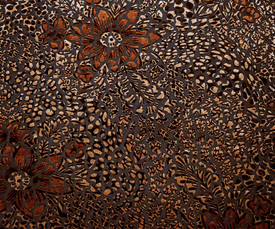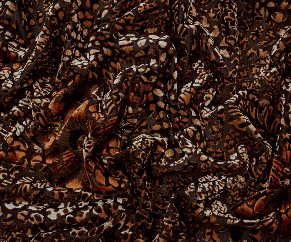 Brown Poly Blend Famous Designer Floral Leopard Burnout Velvet Knit Fabric