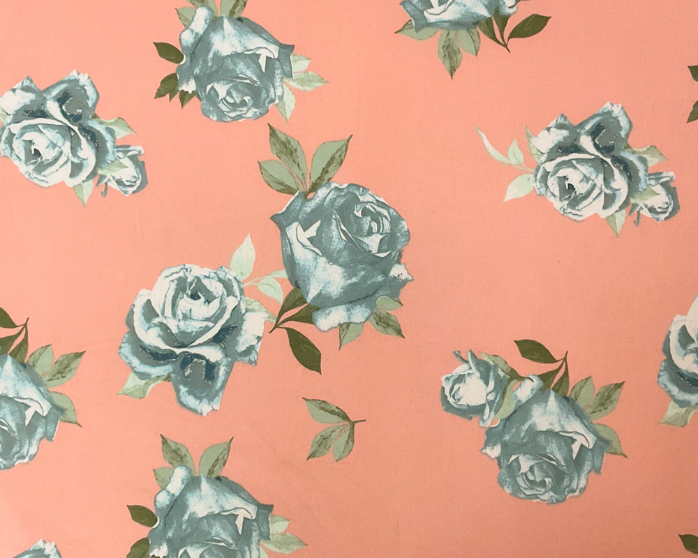 Coral Orange Poly Stretch Floral Print DB Jersey Knit Fabric