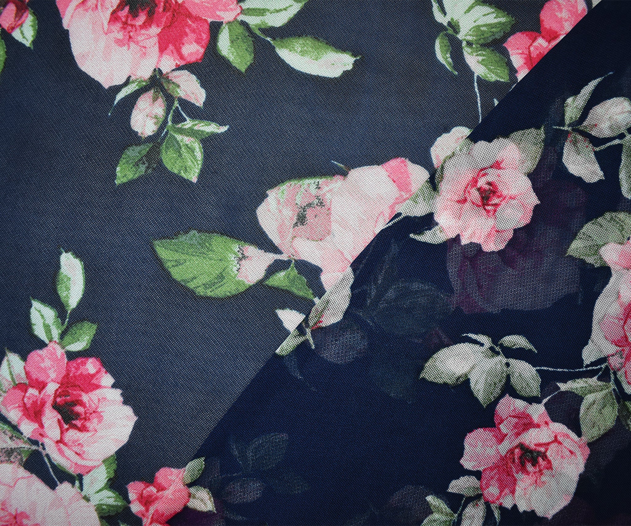 Deep Blue-Multi Poly Stretch Floral Printed Mesh Knit Fabric