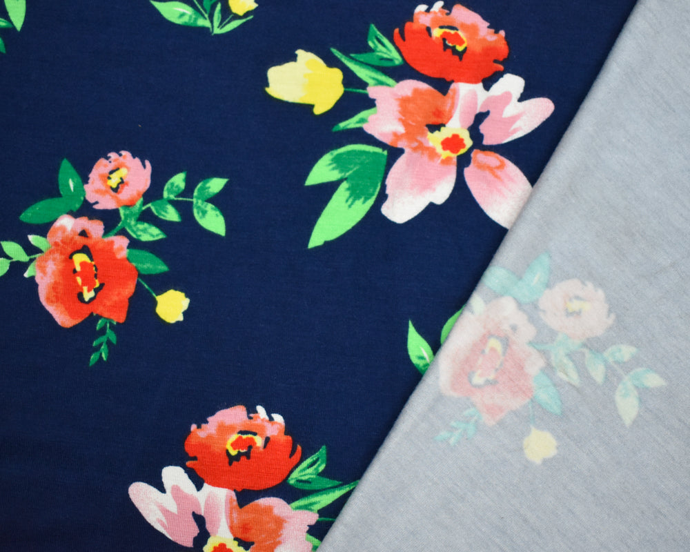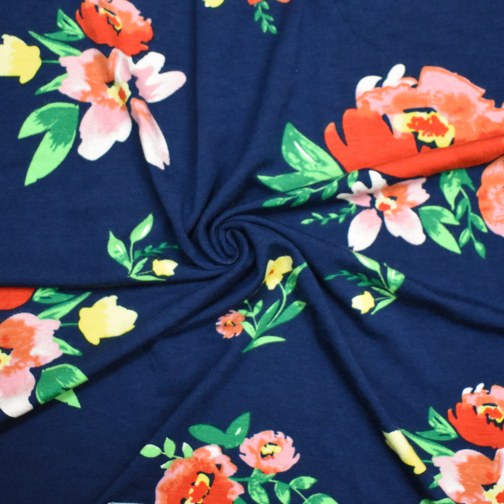 Deep Navy Blue-Multi Rayon Modal Floral Printed Stretch Spandex Jersey Knit Fabric