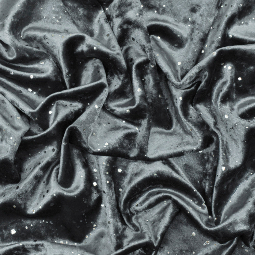 -Lustrous drip dot inspired pattern foil printed stretch velvet knit fabric