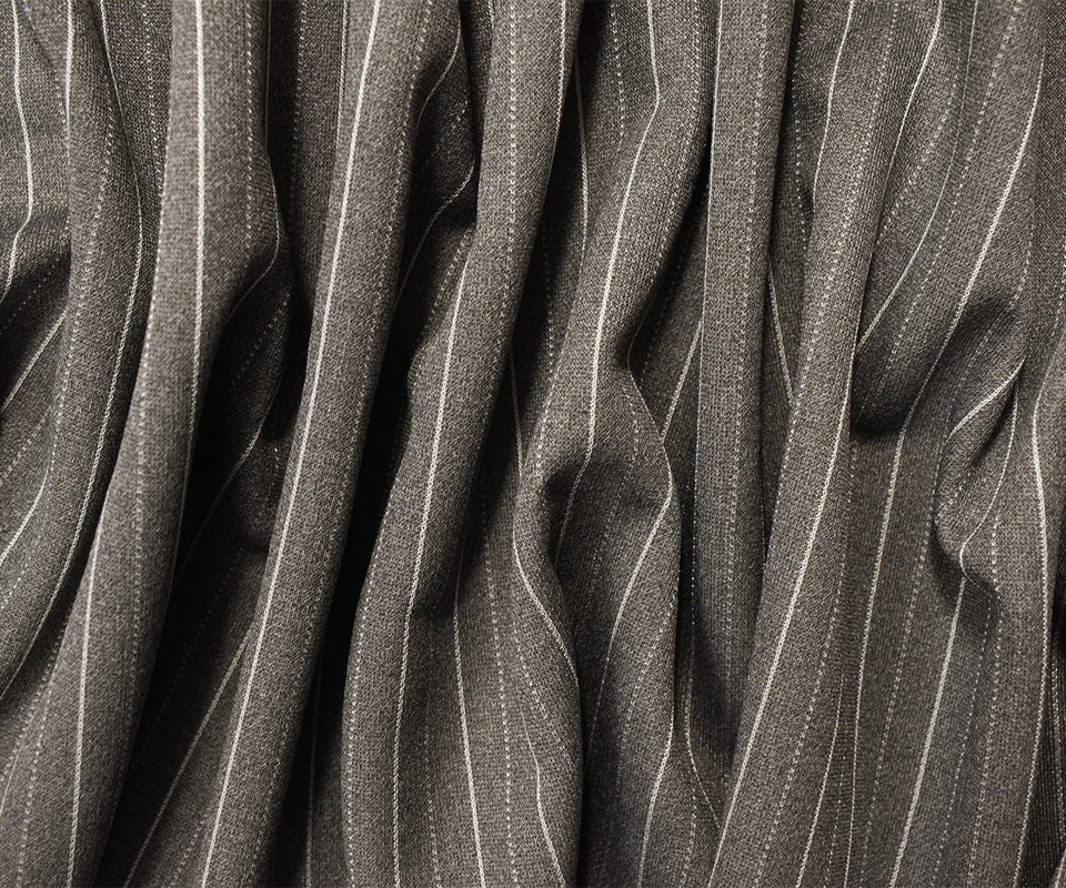 -A poly-wool-spandex double knit featuring crisp stripe definition and four-way stretch. Perfect for modern suiting with architectural structure and easy movement.