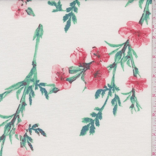 Ivory/Creamy Pink Floral Sprig Brushed French Terry Knit Fabric