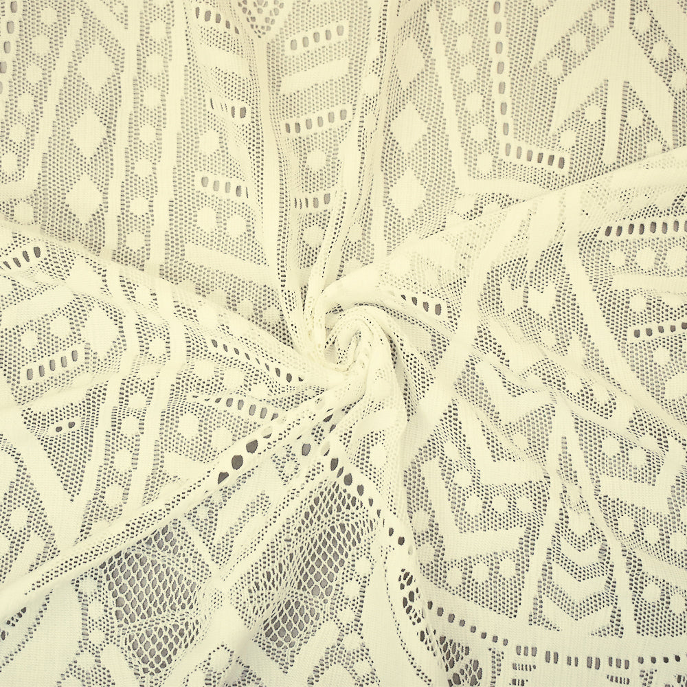 Ivory Nylon Spandex Blend Fancy Geometric Lace-Like Crochet Knit Fabric