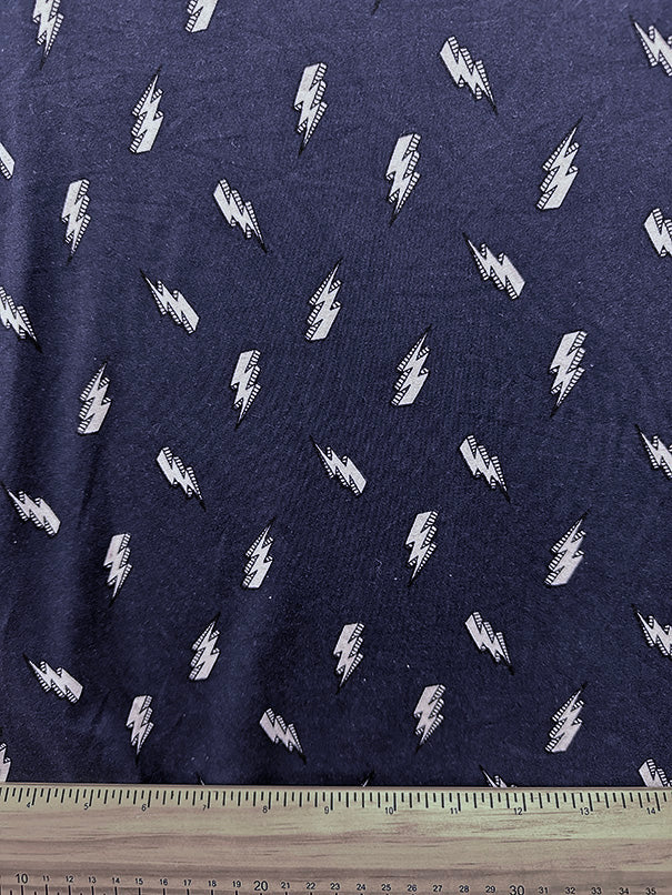 -Black & White Lightning Bolt Print on Navy Blue Double Brushed Jersey Knit Fabric