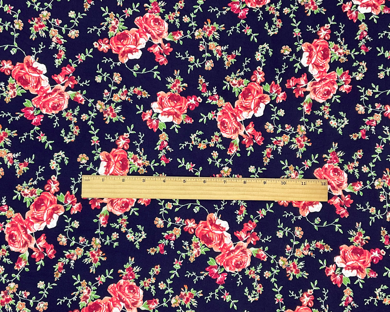 Navy Blue-Multi Poly Stretch Spandex Floral Print DB Jersey Knit Fabric