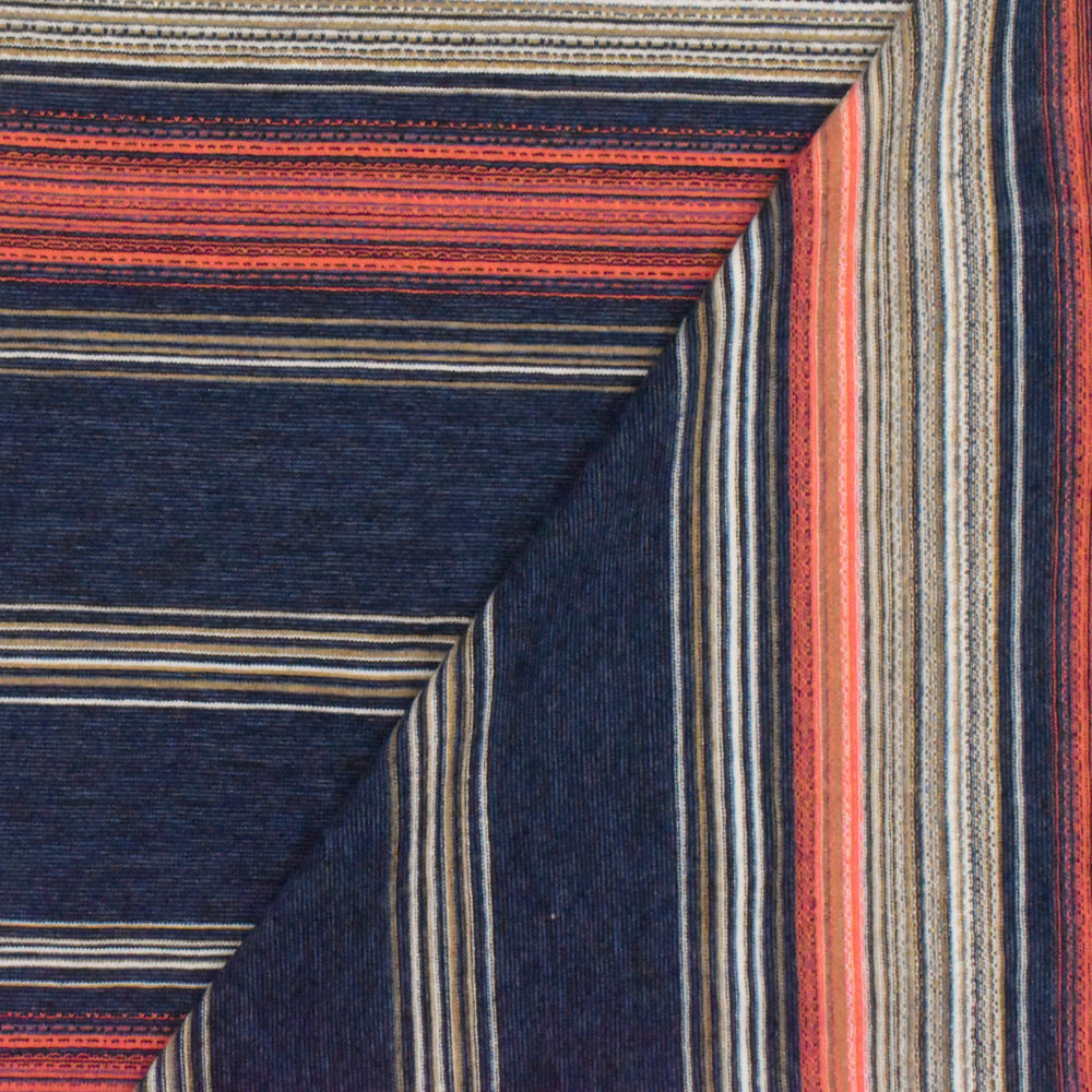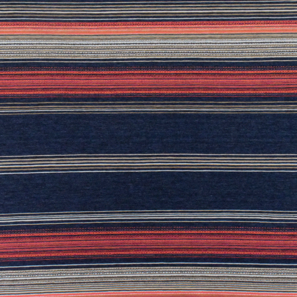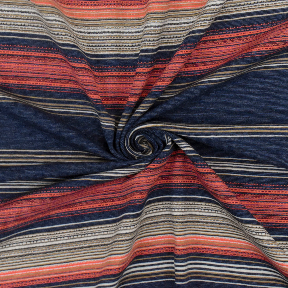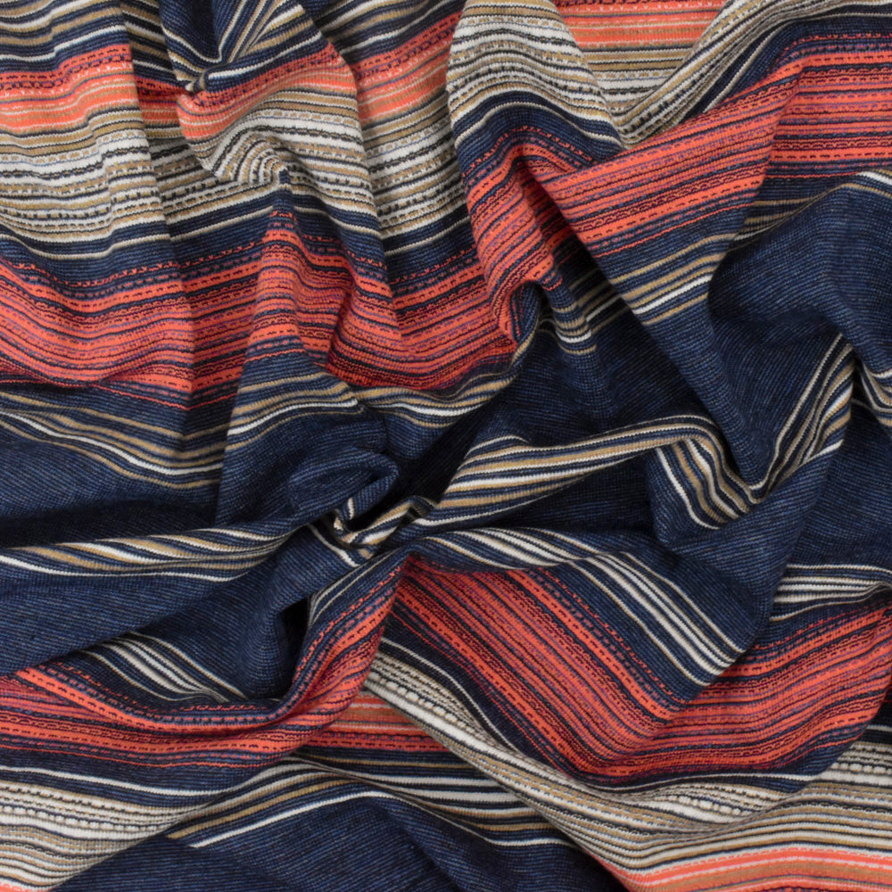 Navy-Coral-Multi Striped Viscose Stretch Jersey Knit Fabric