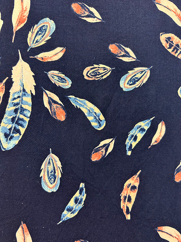 Navy Multi Feather Print Double Brushed Jersey Knit Fabric