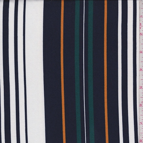 Navy/White/Spruce Stripe Double Brushed Jersey Knit Fabric