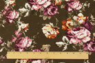 Oak Brown-Pink-Multi Floral Printed Stretch Rayon Jersey Knit Fabric
