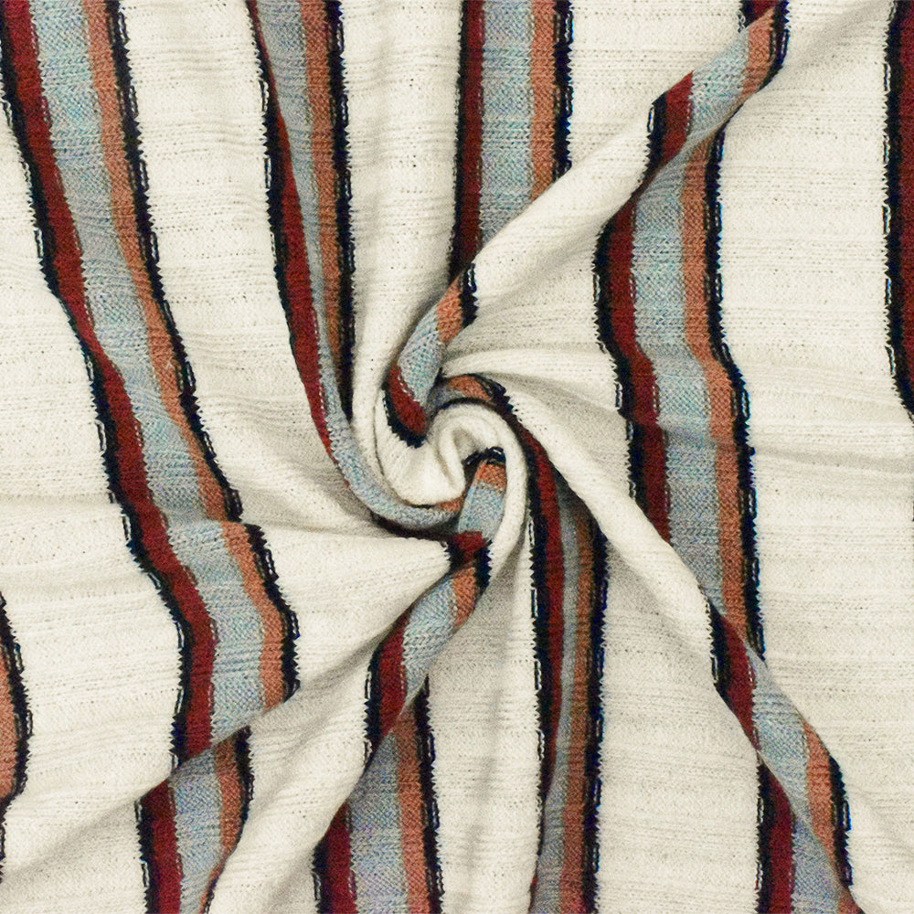 Off White-Red-Multi Stripe Stretch 5X4 Rib Knit Fabric