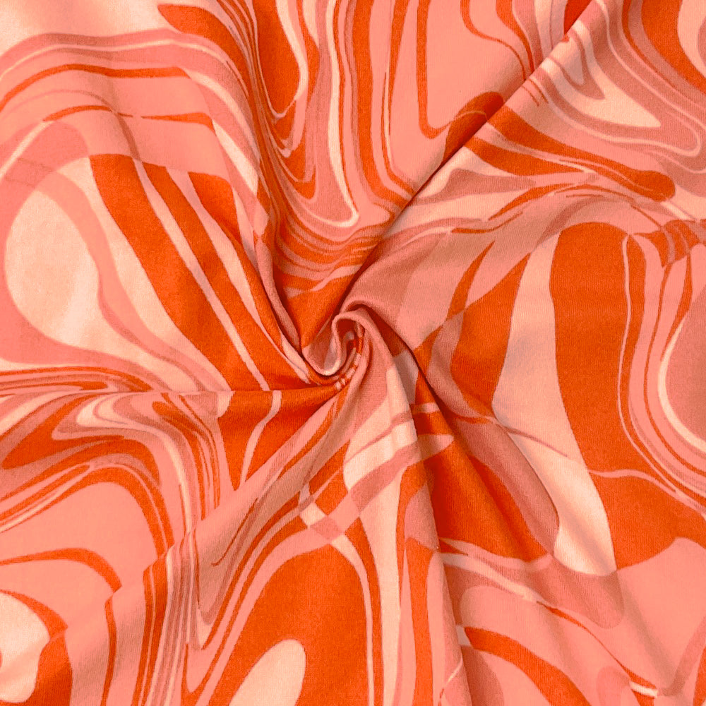 -Orange-Multi Poly Spandex Stretch Abstract Print Double Brush Jersey Knit Fabric