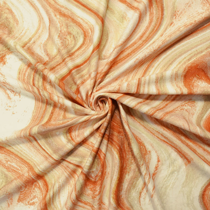 -Orange-Multi Poly Spandex Stretch Abstract Print Double Brush Jersey Knit Fabric