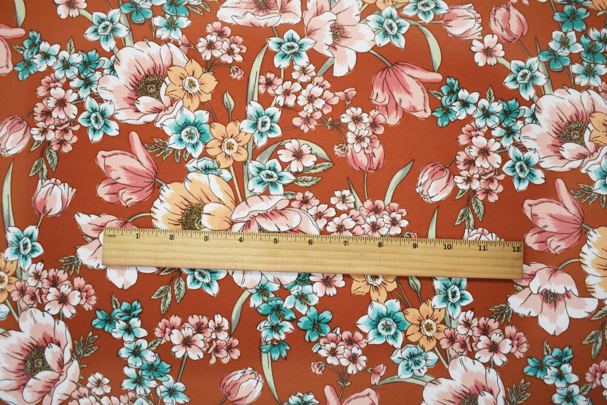 -Orange-Multi Poly Spandex Stretch Floral Print Double Brush Jersey Knit Fabric