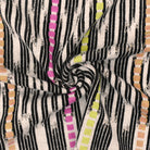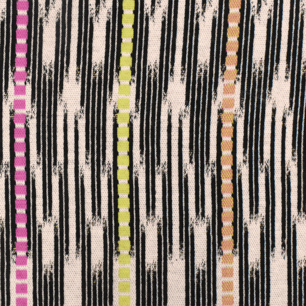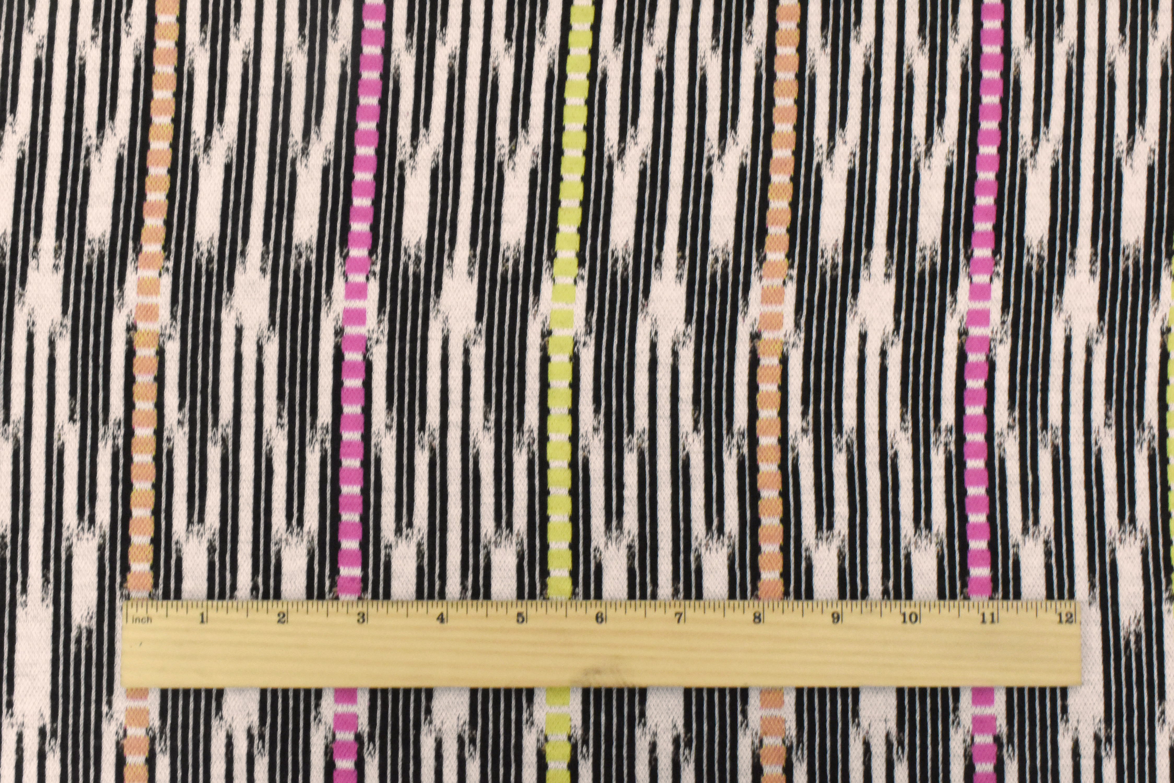 Pink-Black-Multi Abstract Ikat Stripe Stretch Jacquard Double Knit Fabric