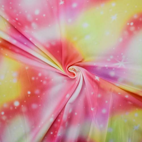 Pink/Yellow/Orange Galaxy Digital Printed DTY Brushed Knit Fabric