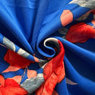 Red Rose Print on Royal Blue Scuba Knit Fabric