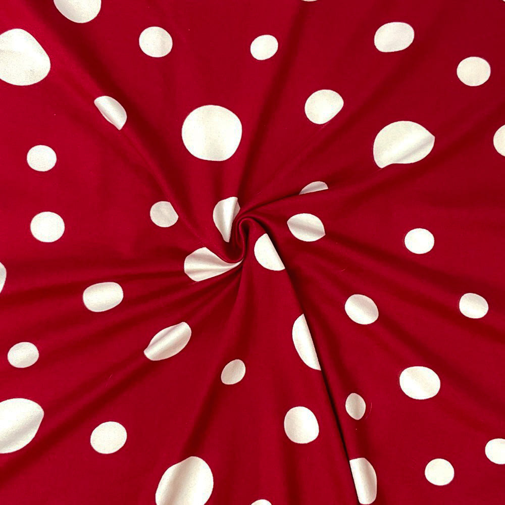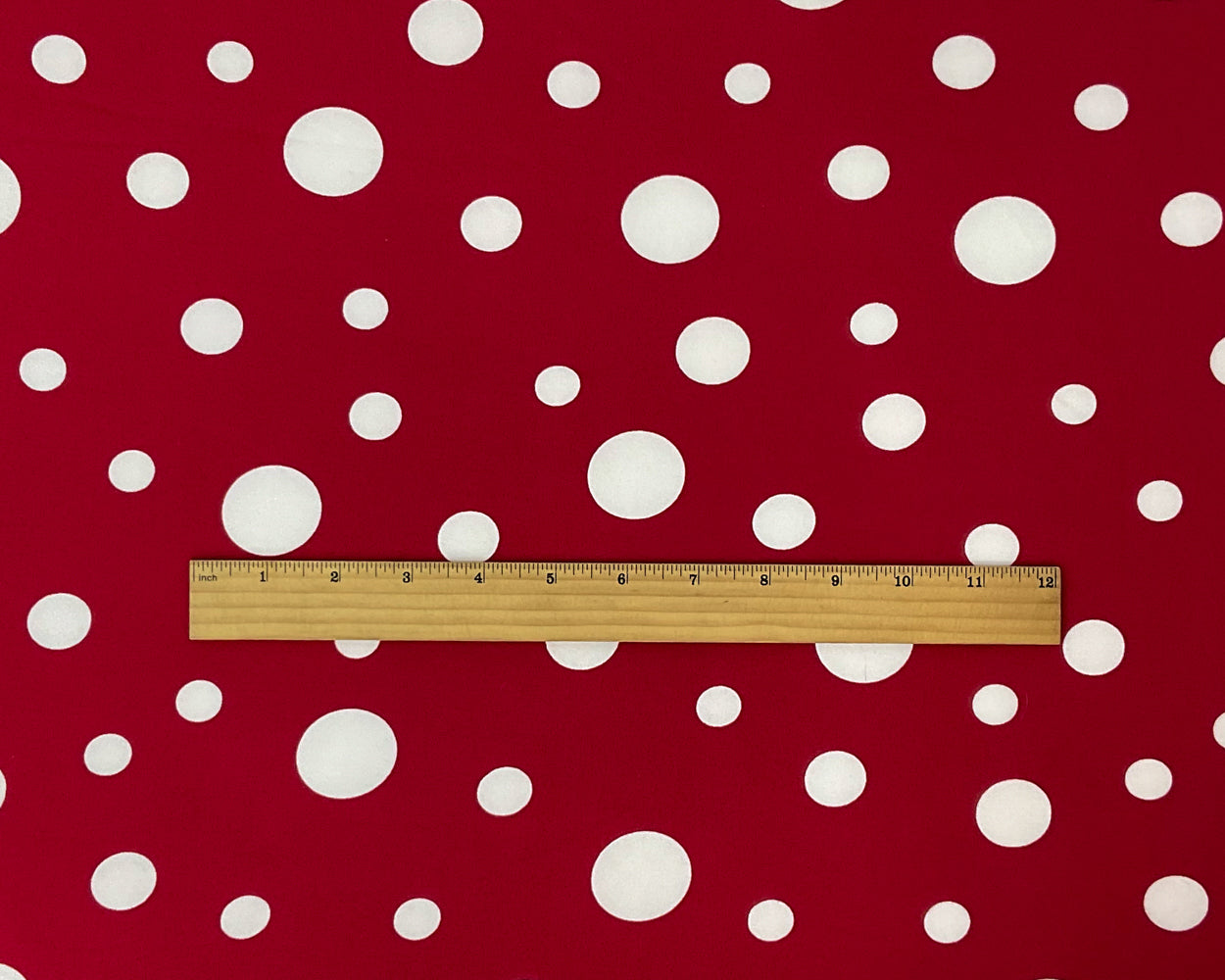 Red-White Poly Spandex Stretch Dot Print DB Jersey Knit Fabric
