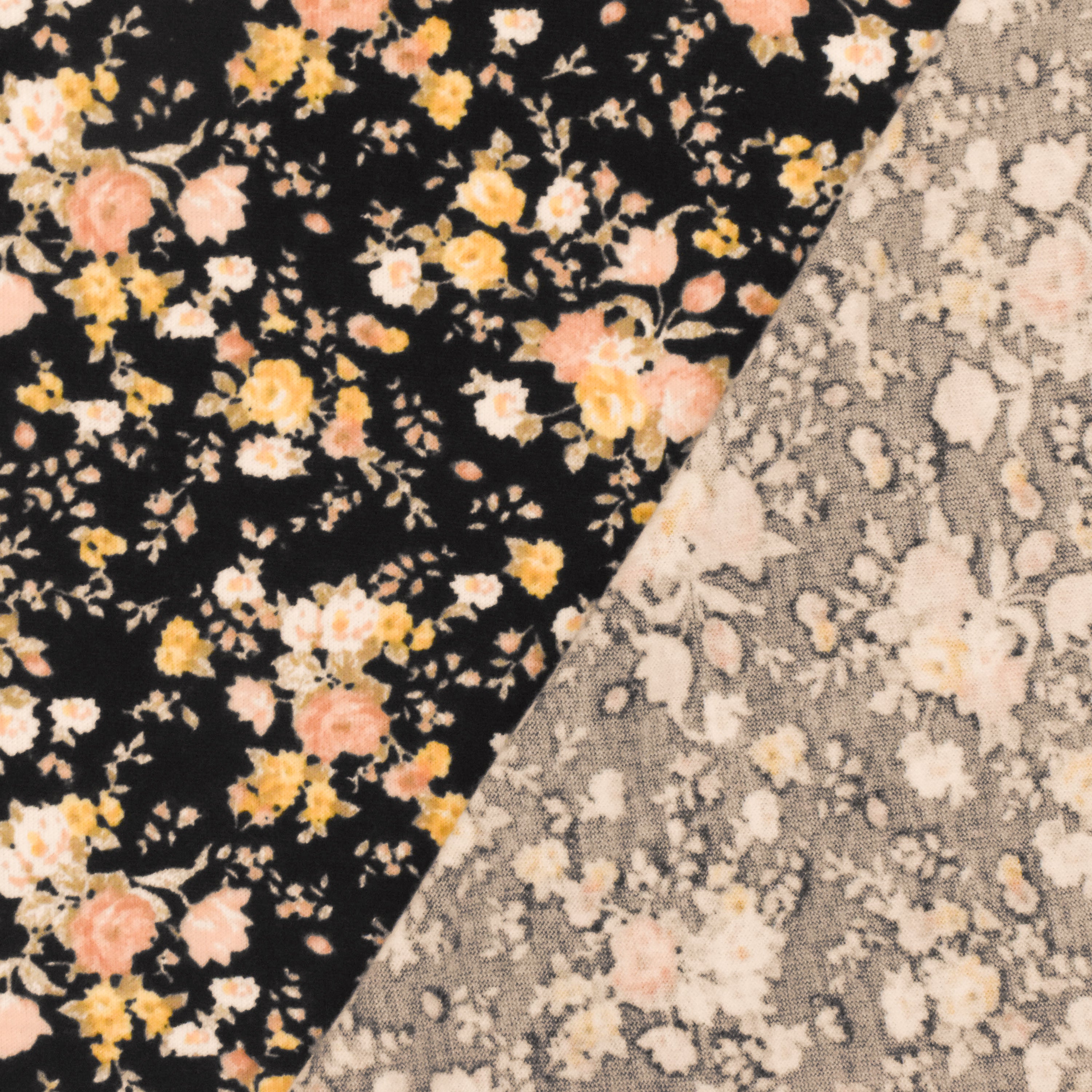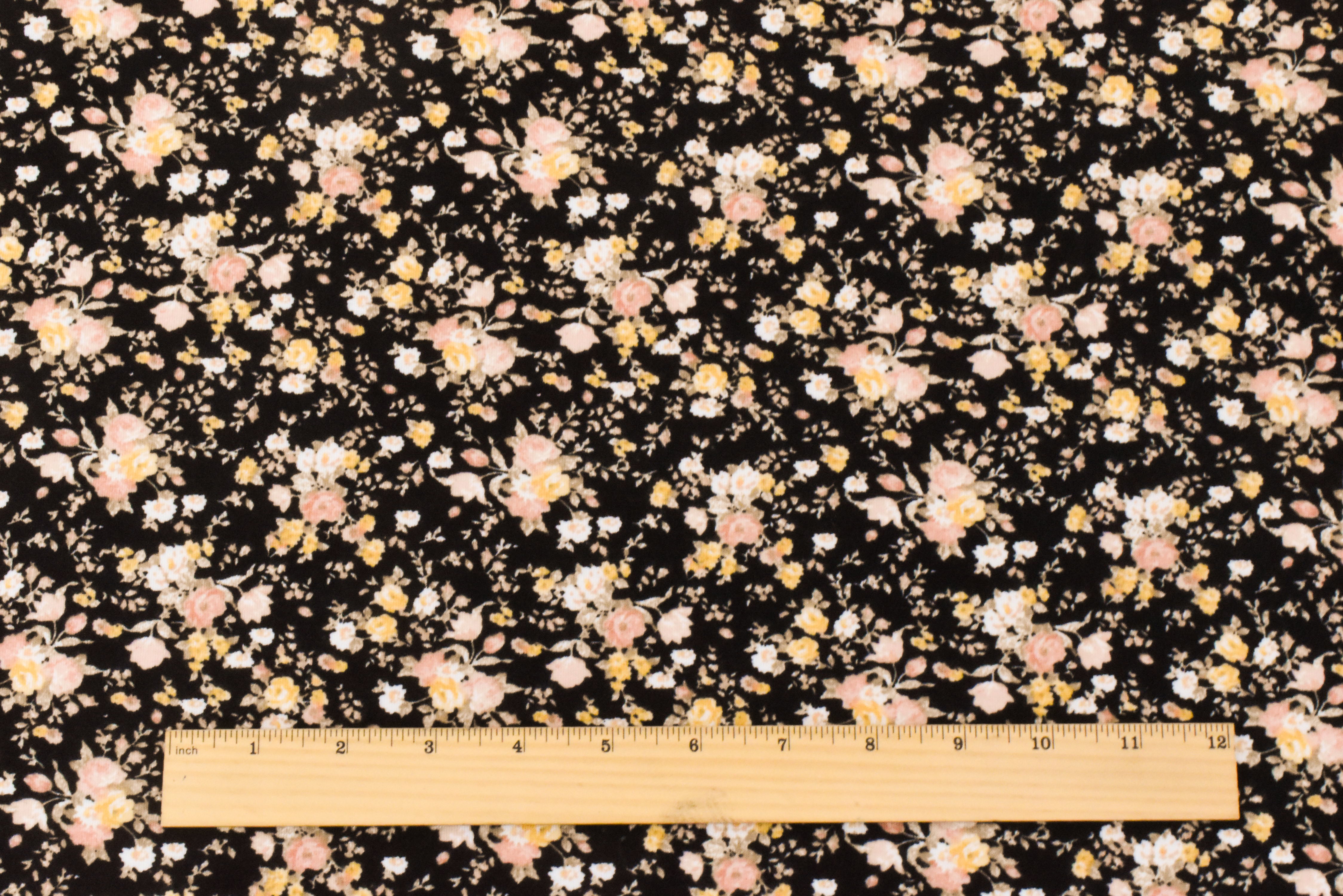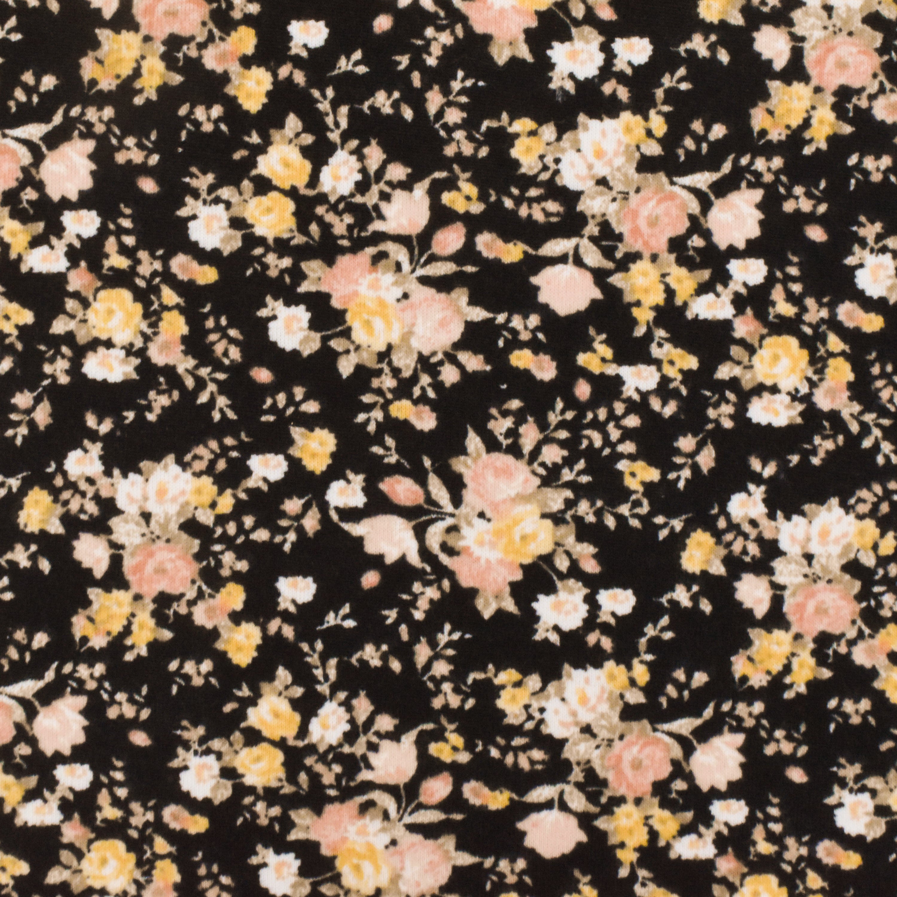 Simple Black-Beige-Multi Floral Printed Stretch Polyester Jersey Knit Fabric