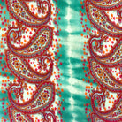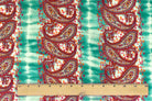 Teal-Red-Multi Striped Paisley Printed Rayon Stretch Jersey Knit Fabric
