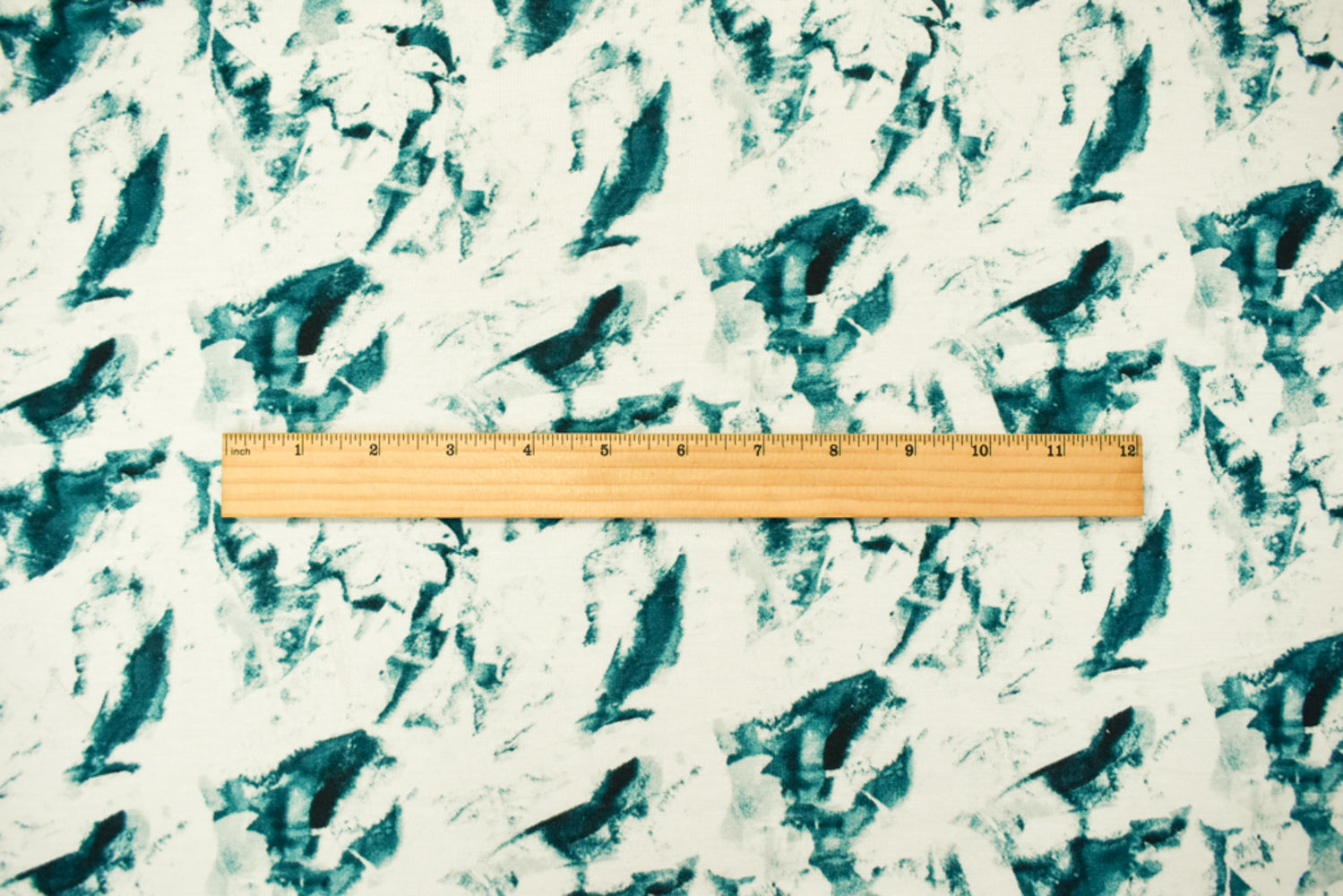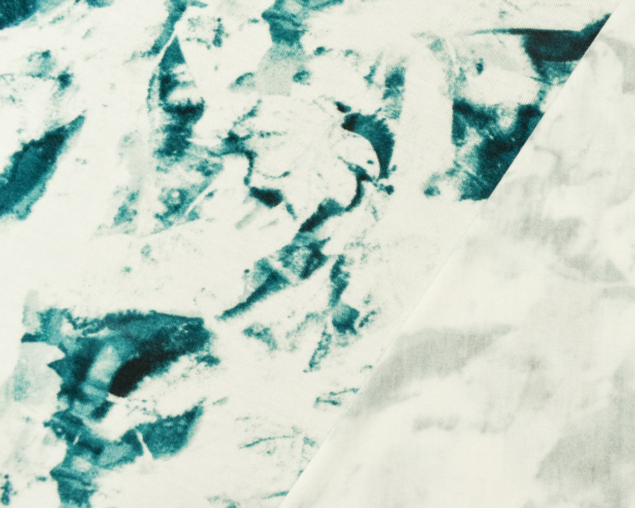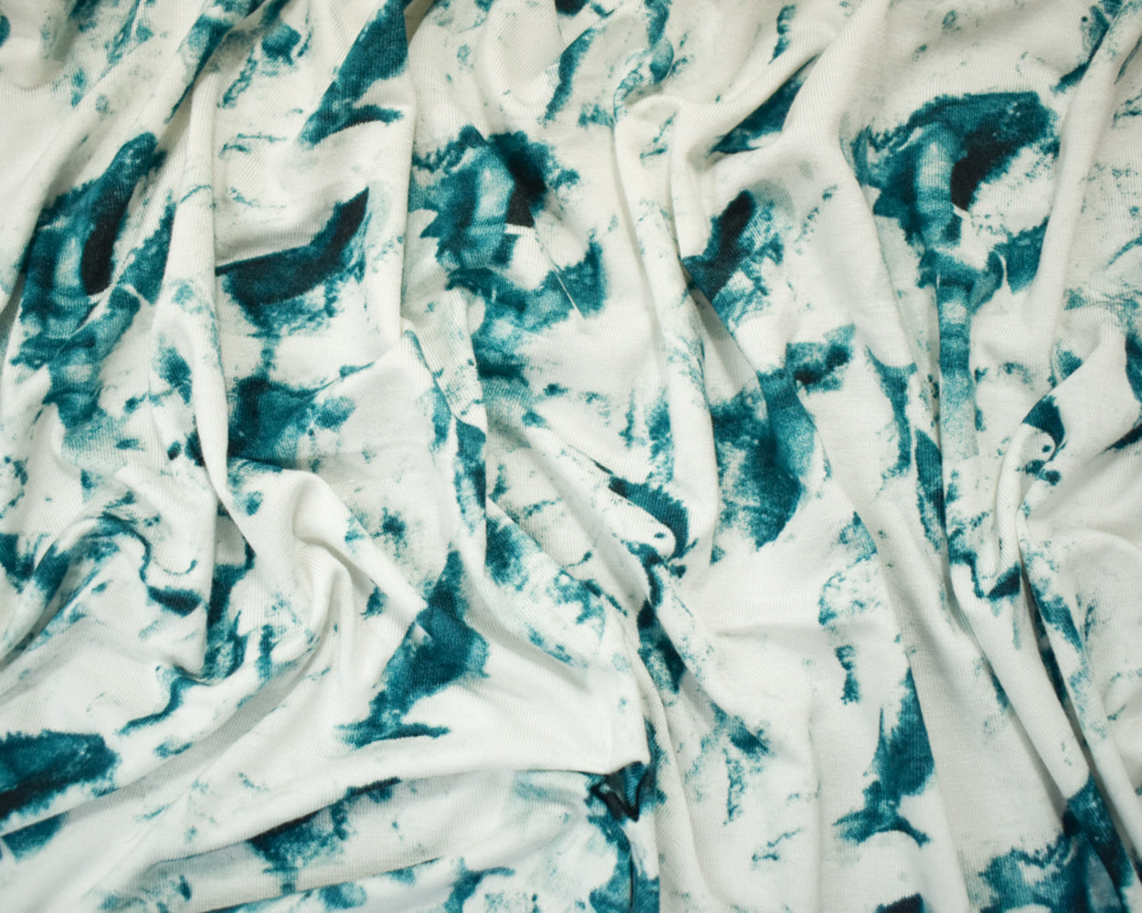 Teal-White Rayon Modal Abstract Texture Print Stretch Spandex Jersey Knit Fabric
