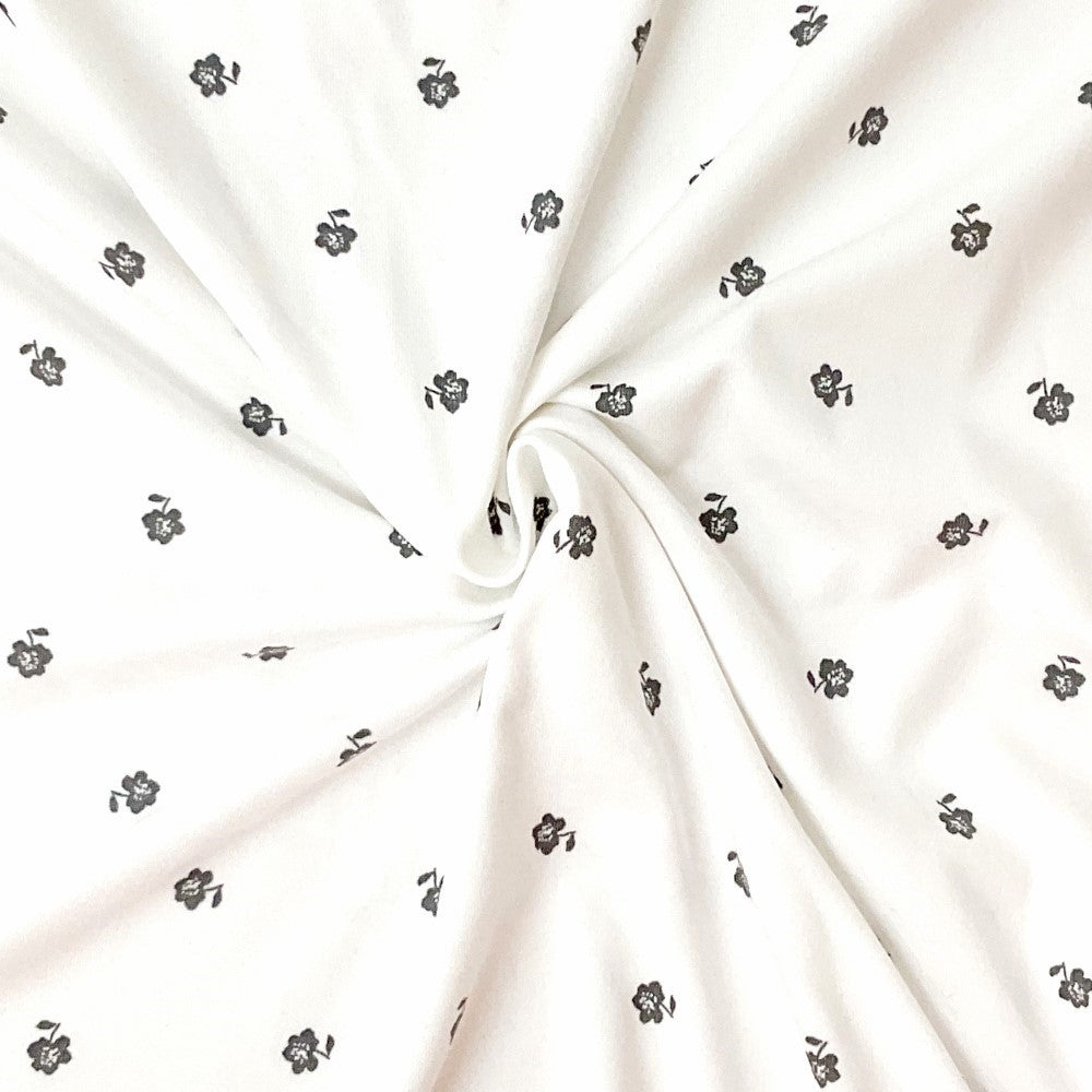 White-Gray Poly Spandex Stretch Floral Print DB Jersey Knit Fabric