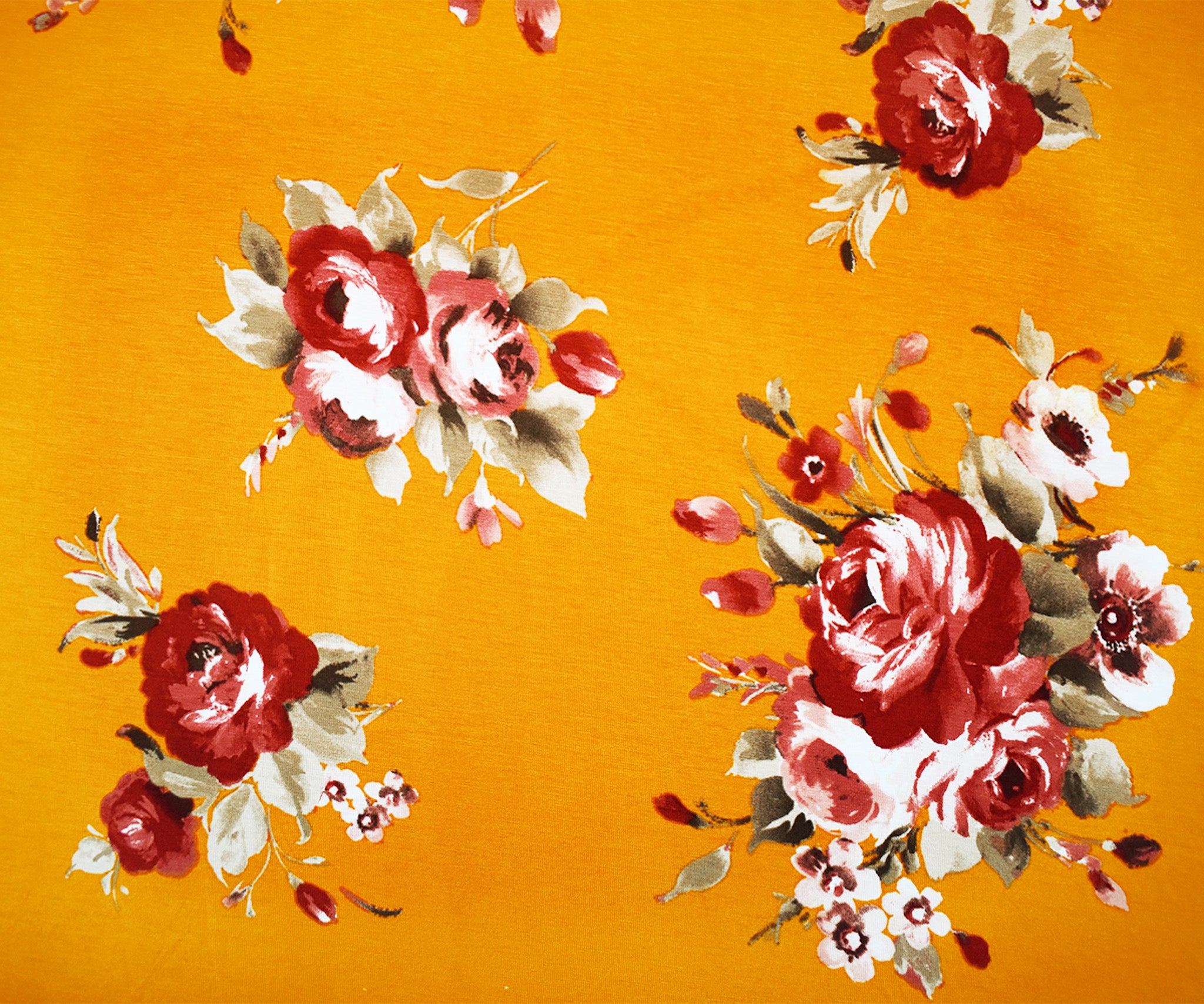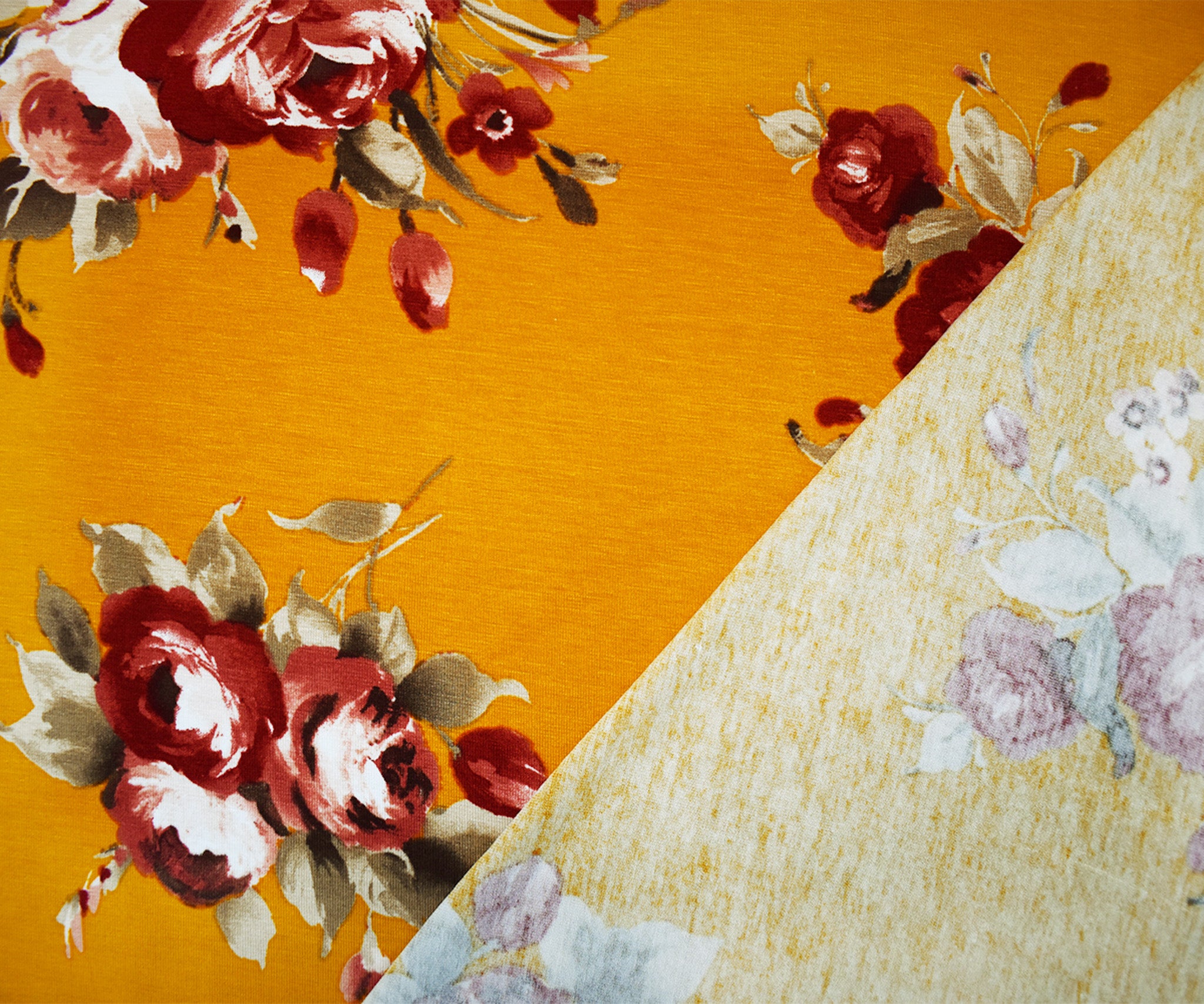 Yellow-Multi Stretch Spandex Floral Printed Jersey Knit Fabric