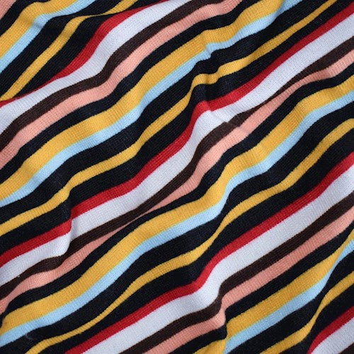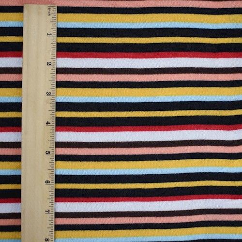 Yellow/Red/Black/Multi Striped Printed Jersey Knit Fabric
