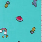 Aqua Green Fruit/Rainbow Double Brushed Jersey Knit Fabric
