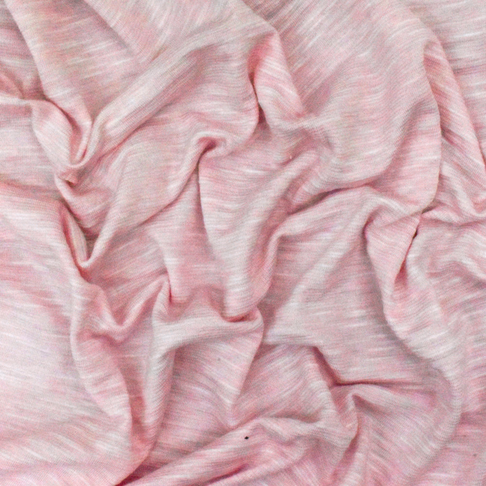 Baby Pink-White Crinkle Stripe Stretch Polyester Slub Jersey Knit Fabric