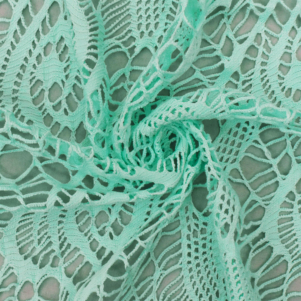 Beachy Teal Abstract Stretch Poly Crochet Knit Fabric