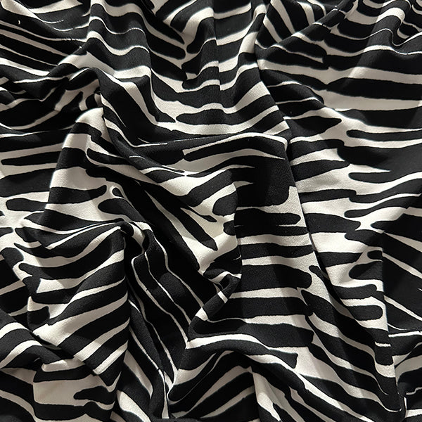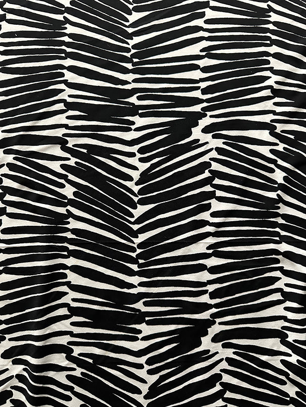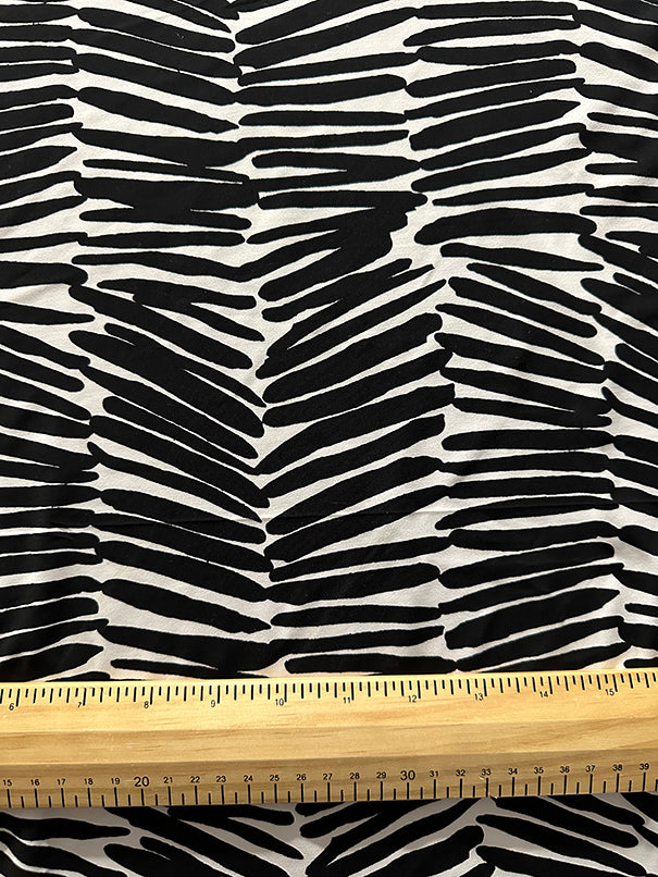 -Black & White Uneven Striped ITY Jersey Knit Fabric