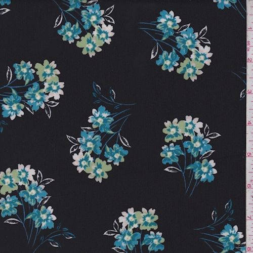 Black/Aqua/White Deco Matte Jersey Knit Fabric