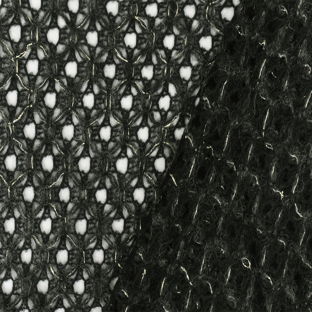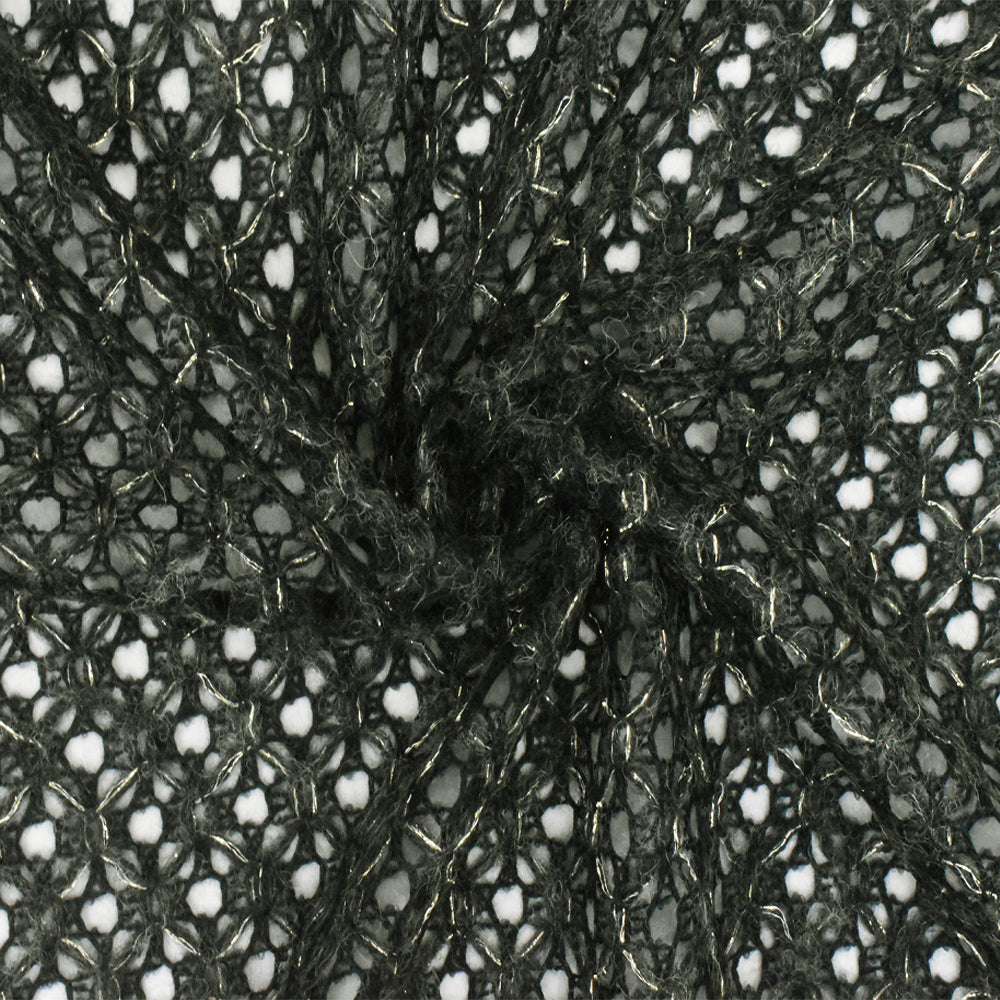 Black-Gold-Gray Diamond Net Wool Blend Crochet Knit Fabric