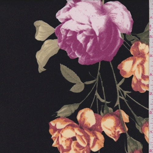 Black/Magenta/Brick Peony Super Brushed Jersey Knit Fabric
